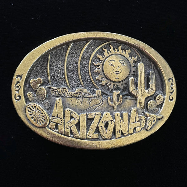 SOLD Vintage Brass Arizona Belt Buckle, Southwestern Desert, Great American Buckle 3 1/2" L