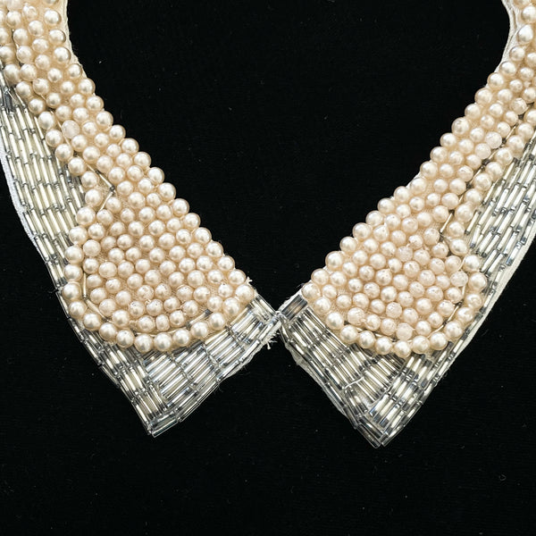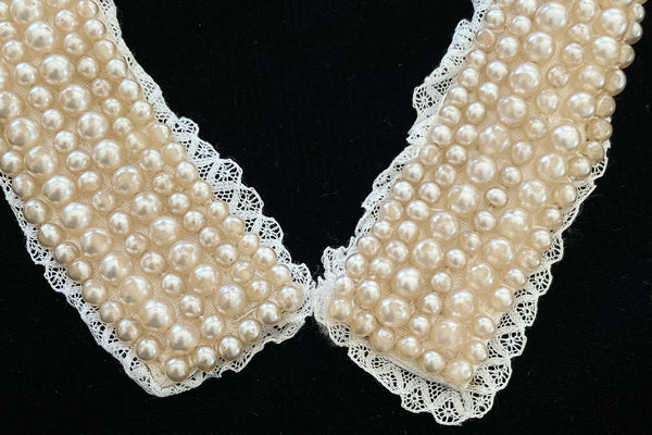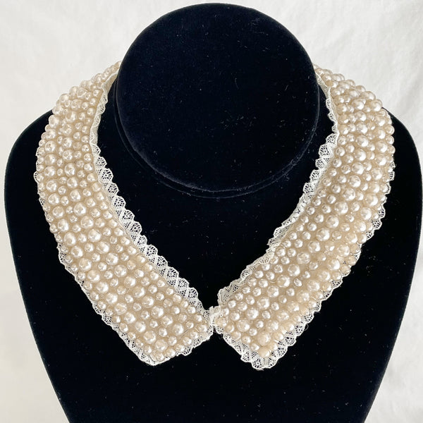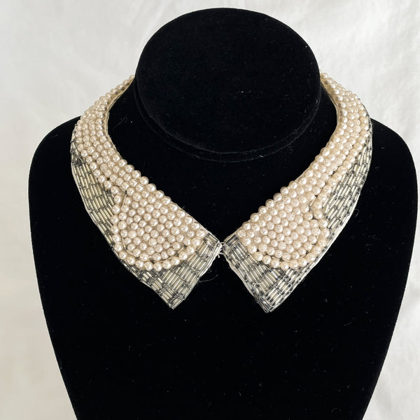 Vintage 50s Faux Pearl Collar Necklace Choker, Glass Bead Accents 14 3/4"L