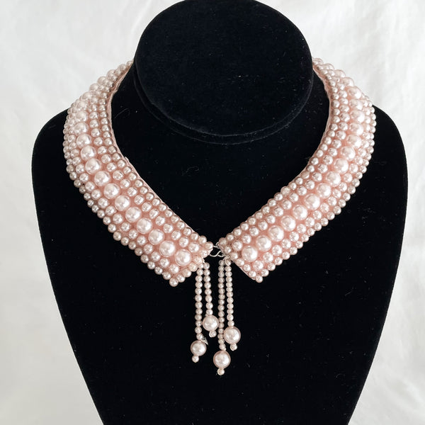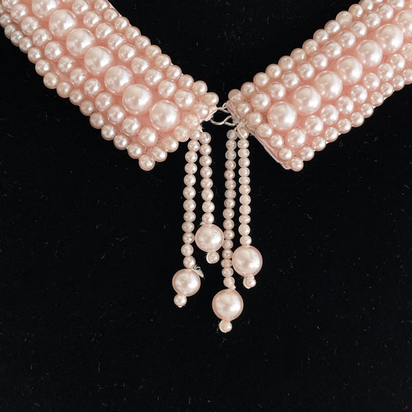 Vintage 50s Faux Pearl Collar Necklace Choker, Made in Japan/ Soft Pink 15"L