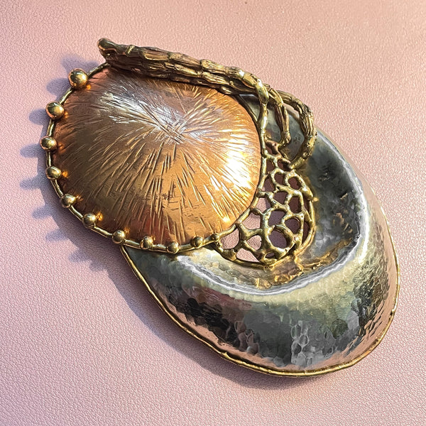 Vintage Maya Mexico Belt Buckle, Hammered Copper Mixed Metal Buckle