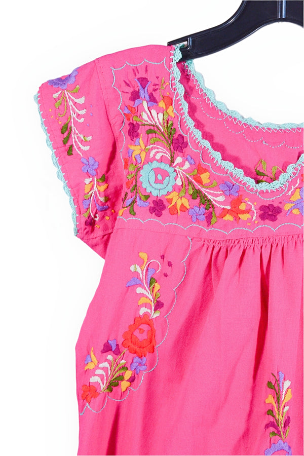 Vintage Hot Pink Embroidered Boho Peasant Top, Girls Blouse or Woman XS/XXS