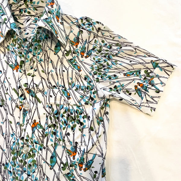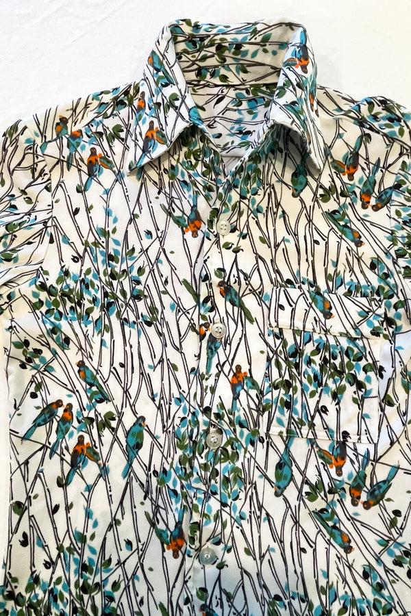 Vintage 70s Boys Disco Shirt, Birds and Flowers, Slim Fit