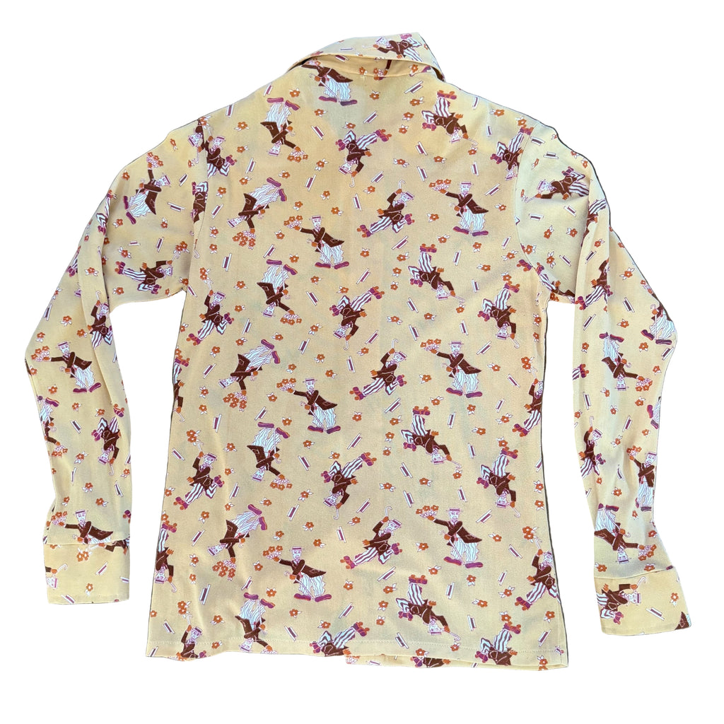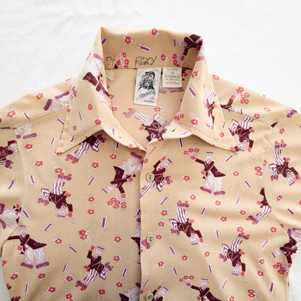 CONDITION: Good preowned vintage. A little color shifting in some areas. A small hole on the backside near neckline has been patched. Clean and ready to wear.