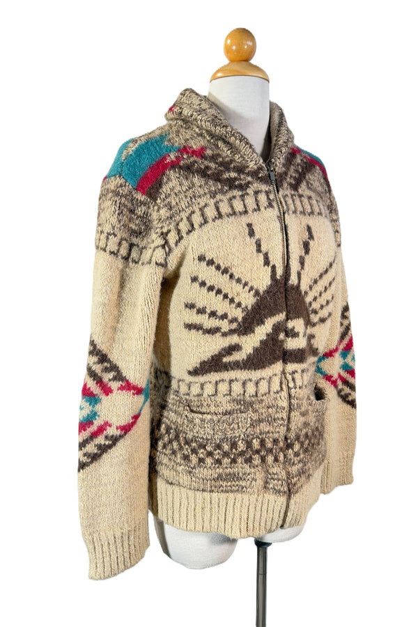 Faherty Southwestern Cowichan Knit Cardigan, Zip Front Sweater S