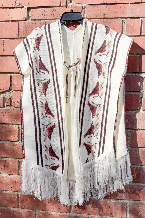 Vintage Knit Fringe Poncho, Hippie Tunic Top, One Size