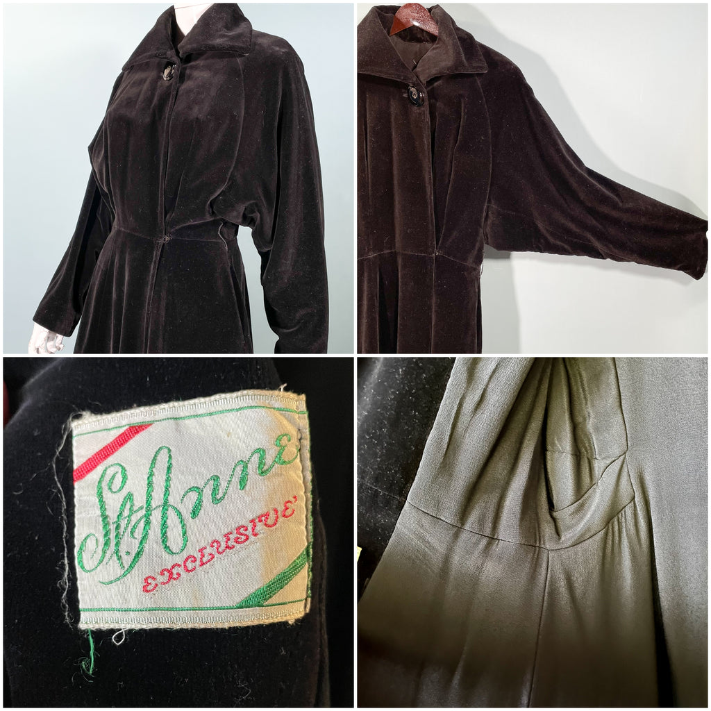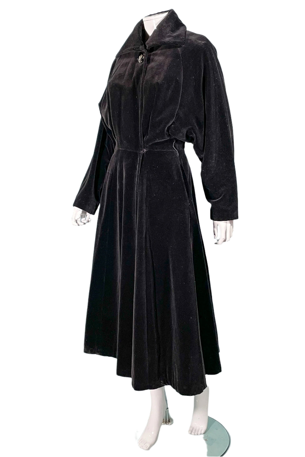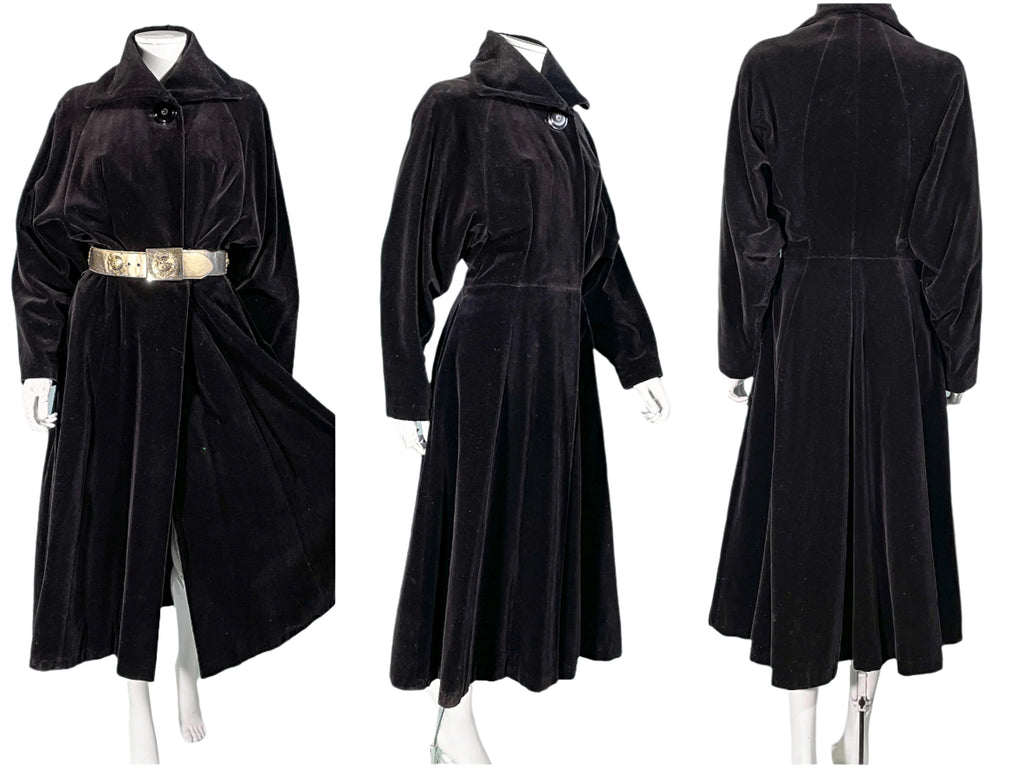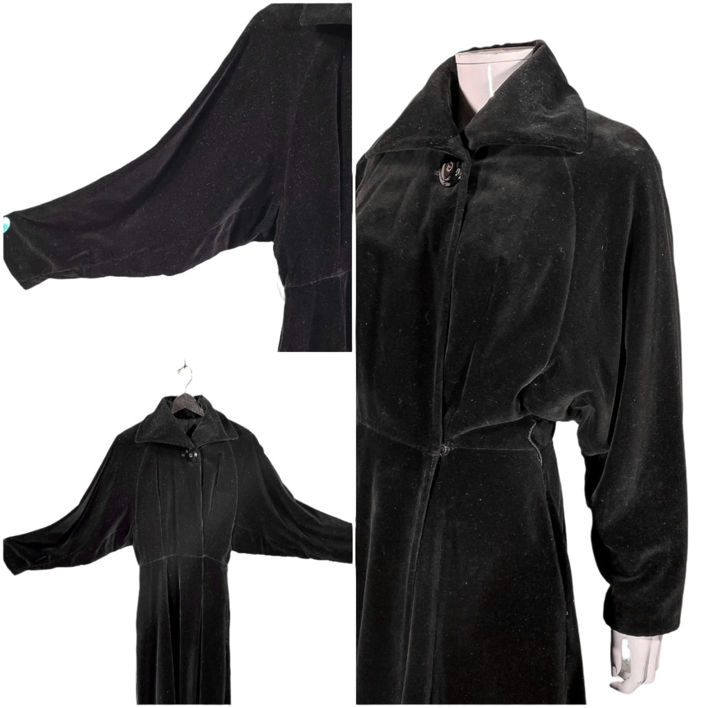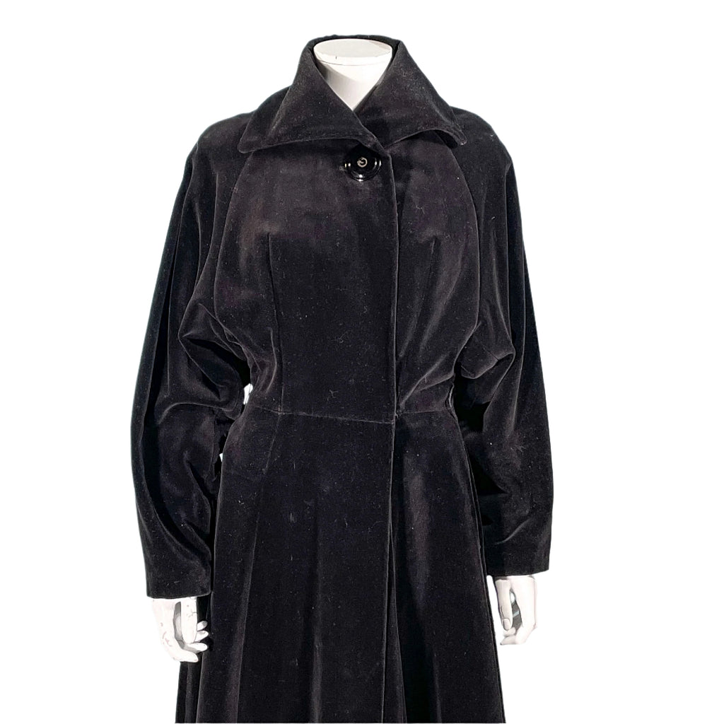 Beautiful 1940s black velvet princess coat.