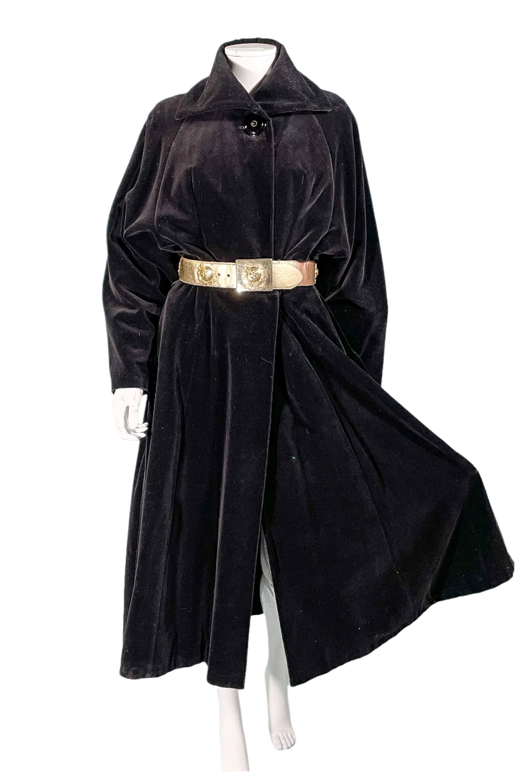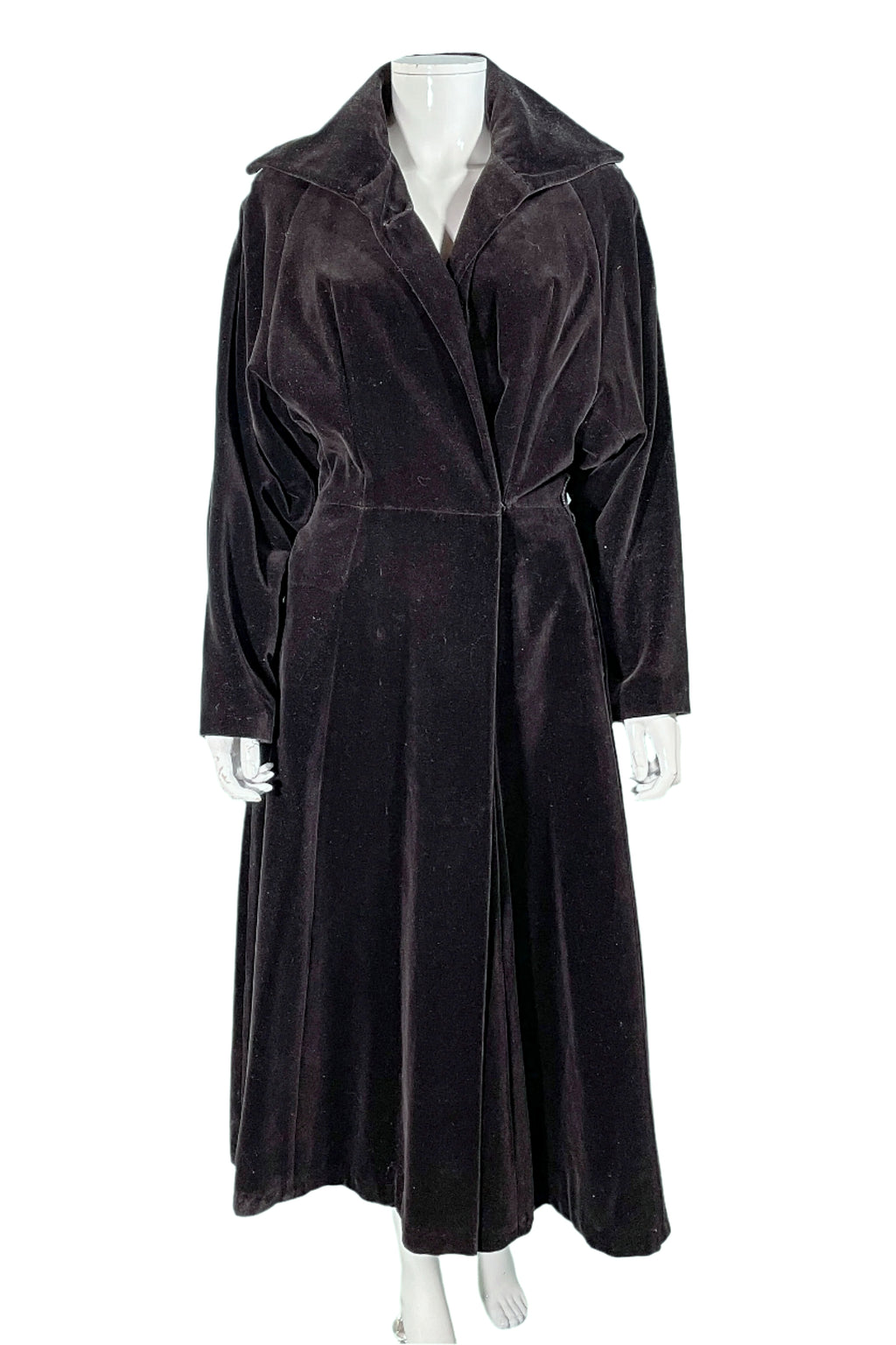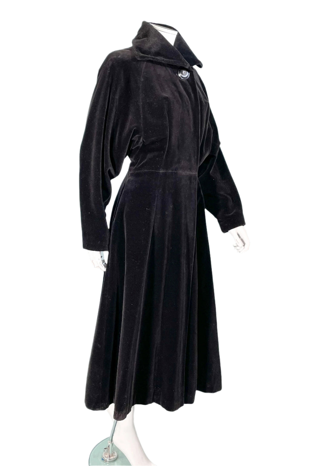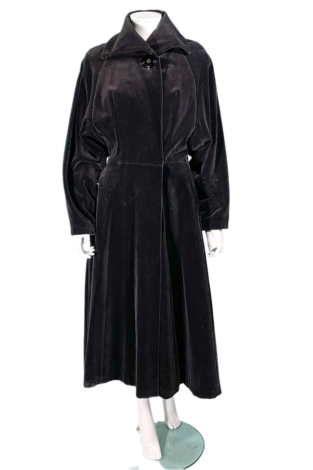 Beautiful 1940s black velvet princess coat.