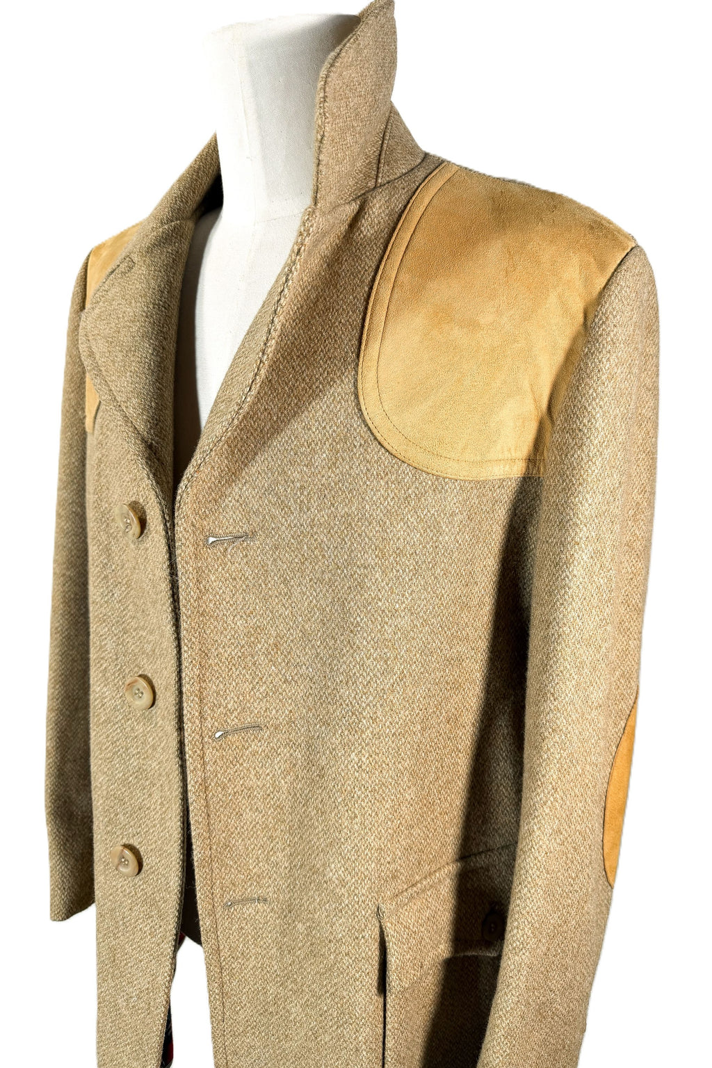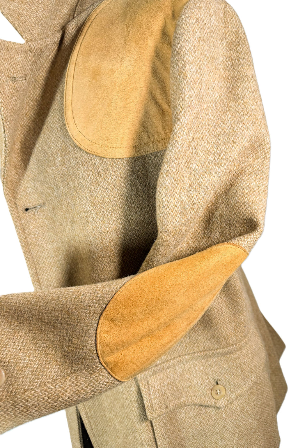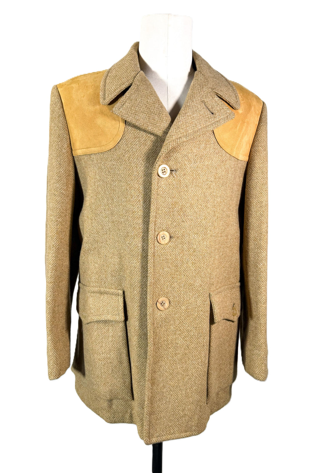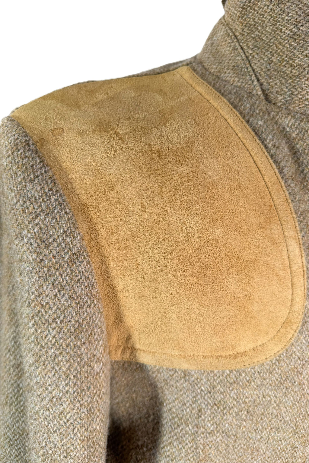 Vintage wool tweed jacket with suede patches on the shoulders and elbows.