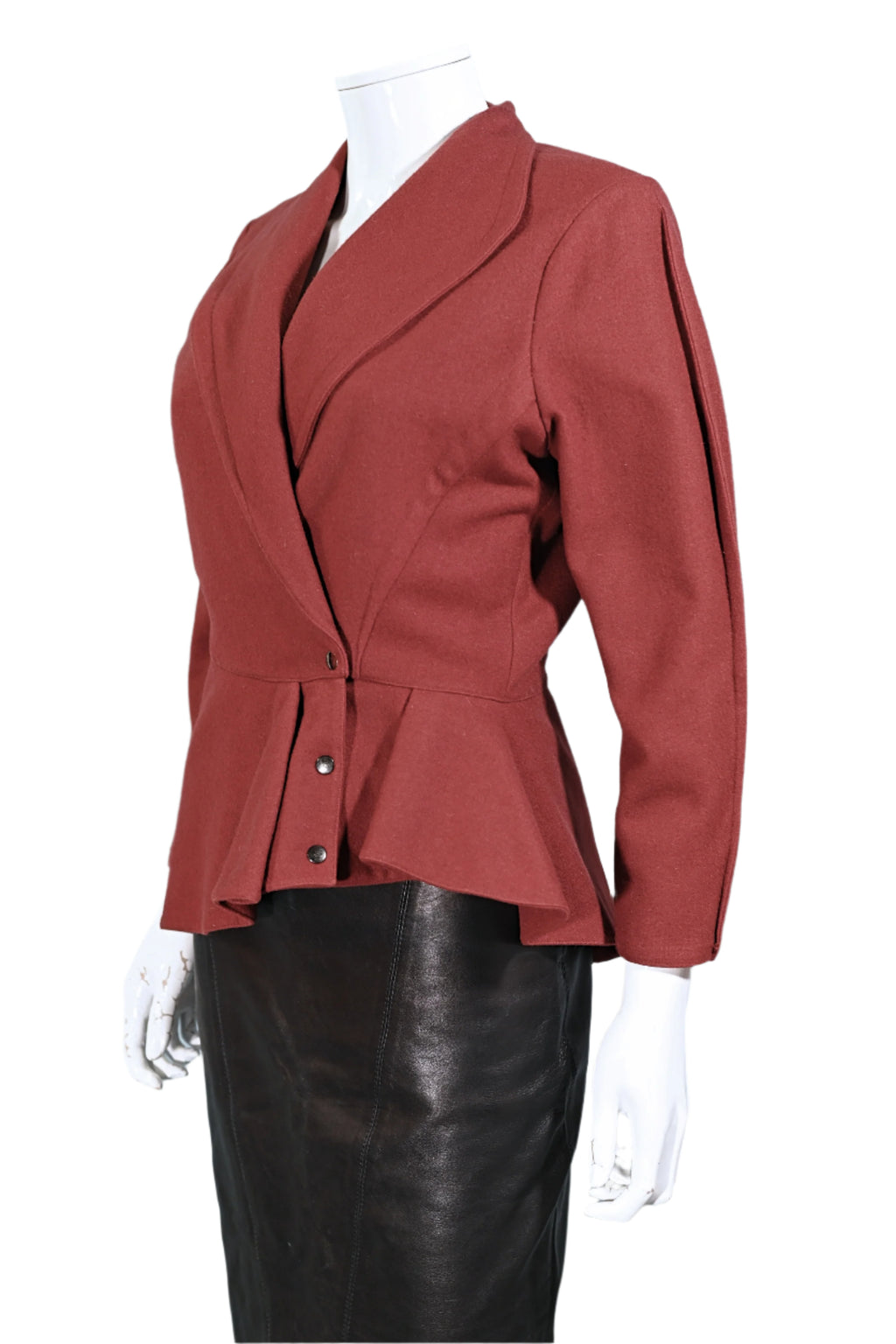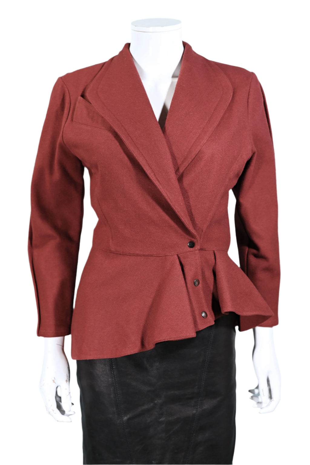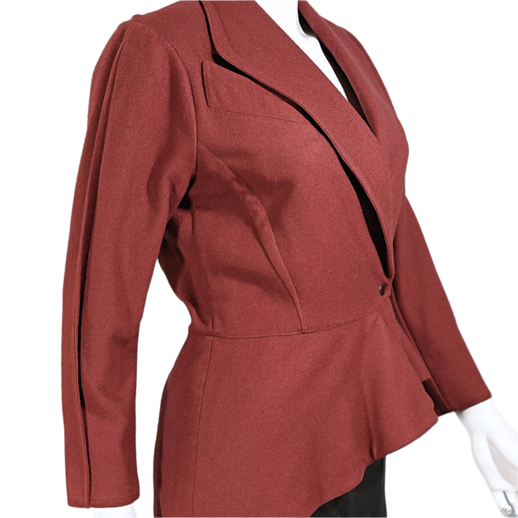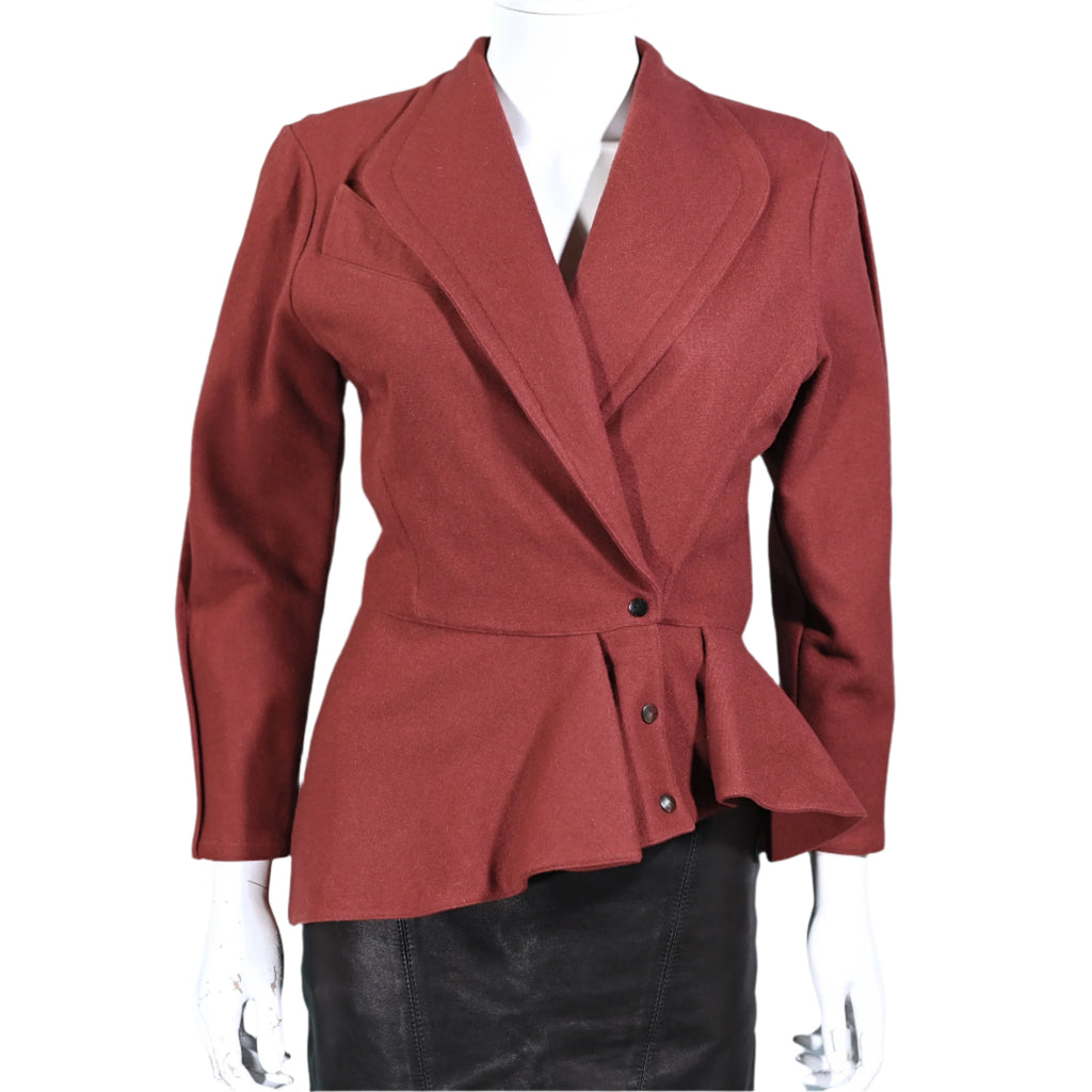 Vintage 80s wool blazer with an asymmetrical hemline and peplum panel.
