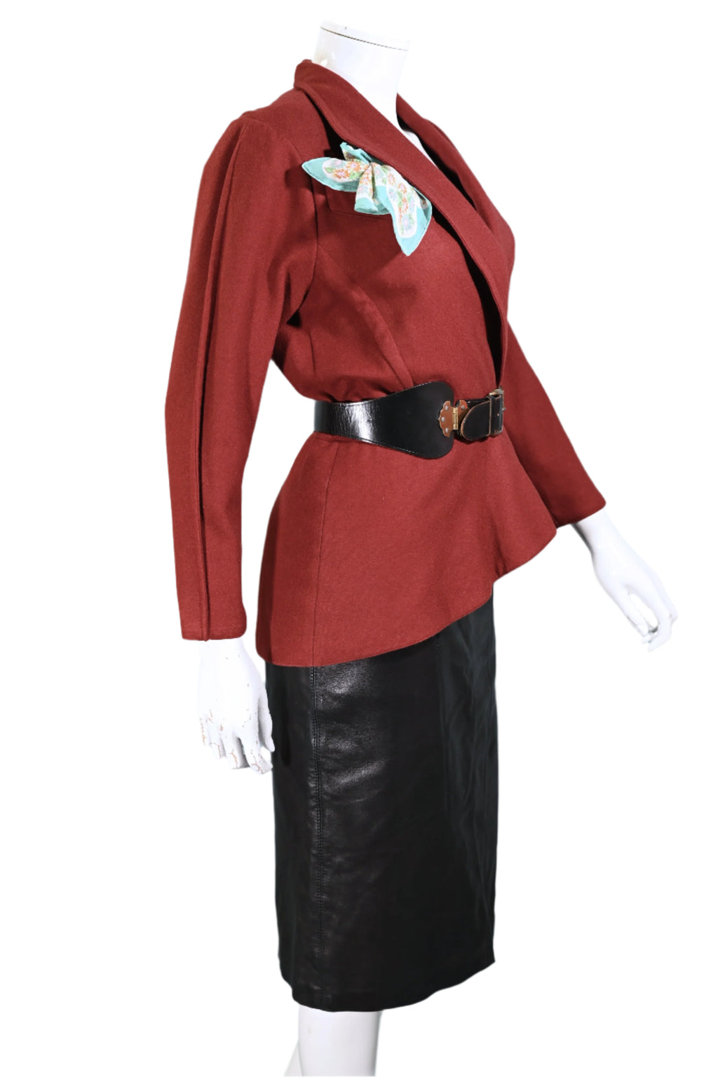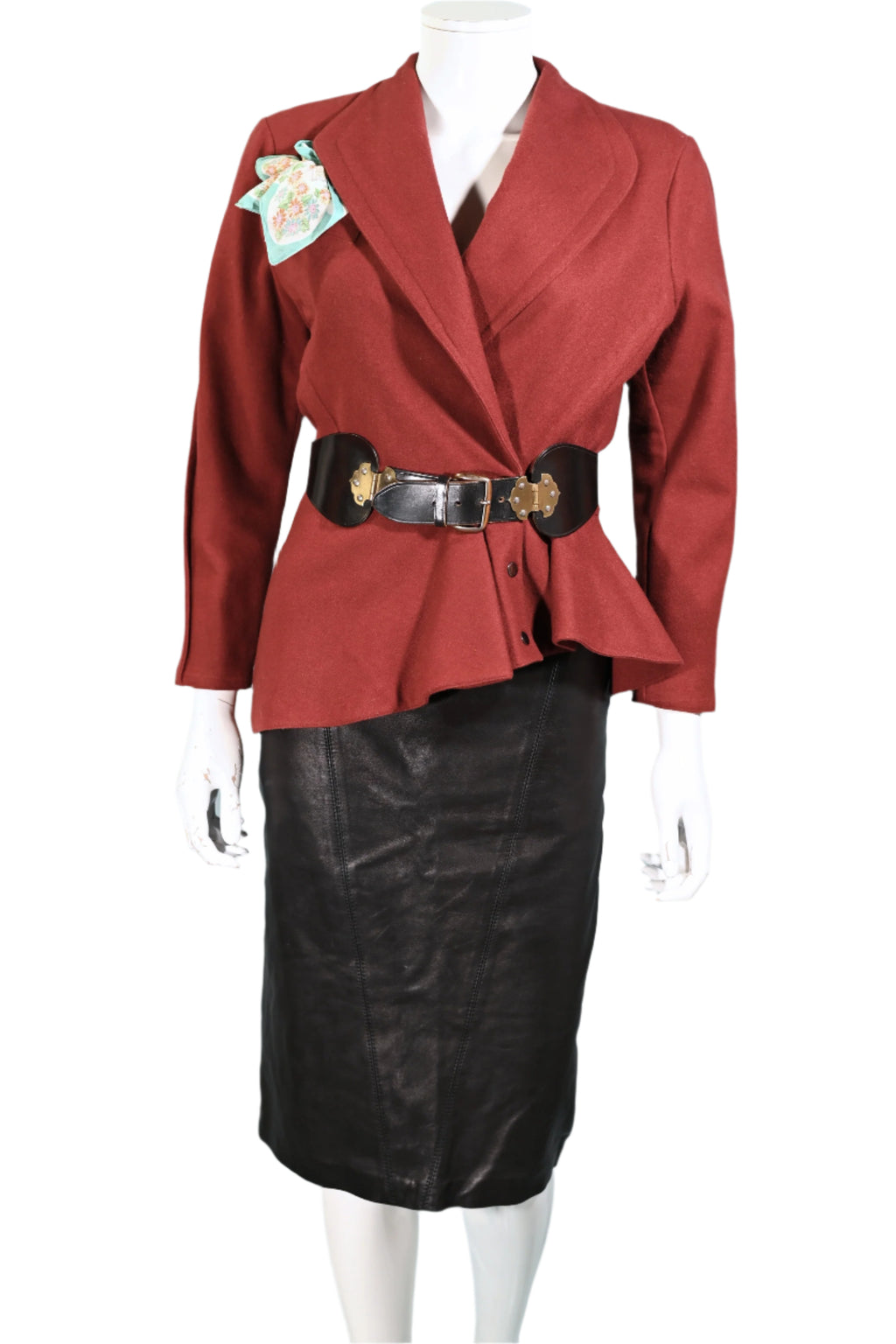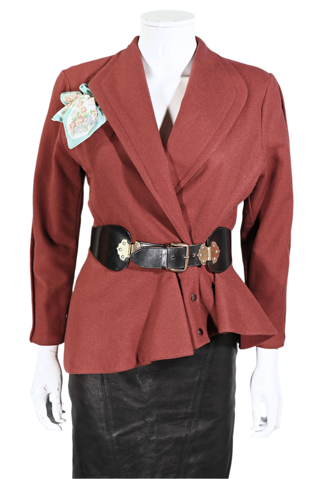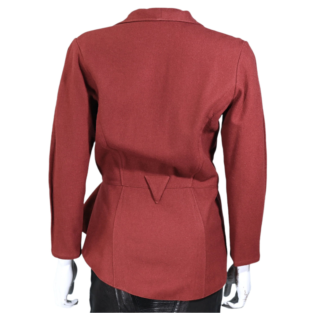 Vintage 80s wool blazer with an asymmetrical hemline and peplum panel.