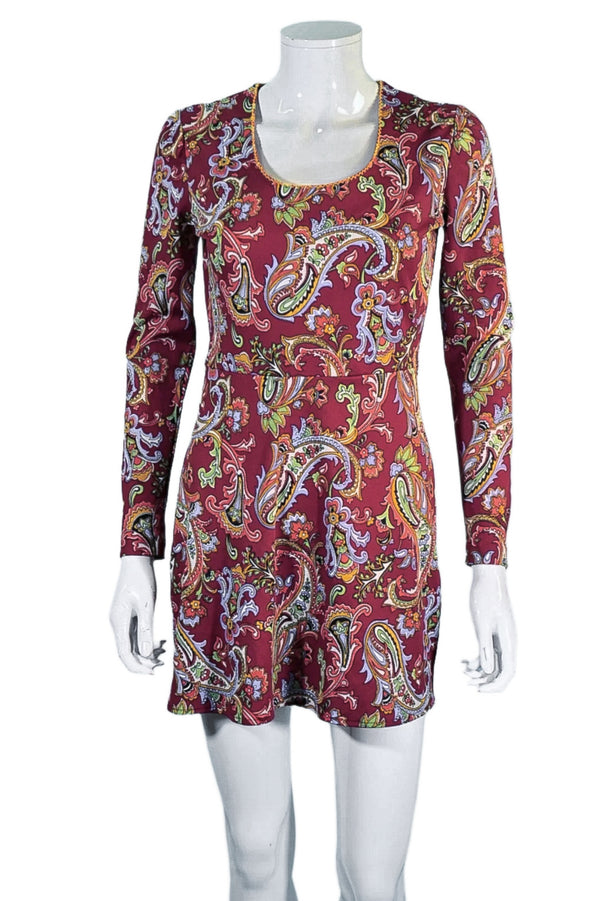 Vintage 60s Mod Psychedelic Print Dress, White Collar & Cuffs
