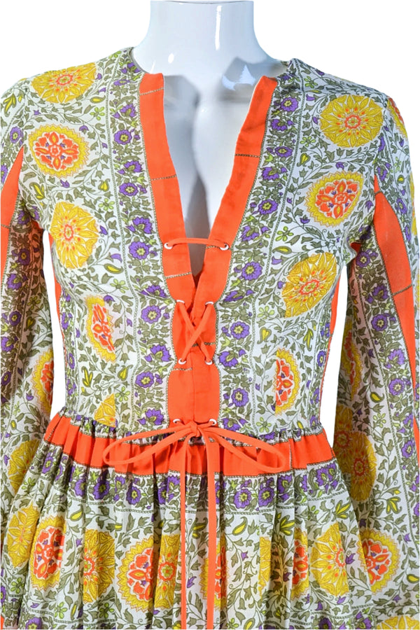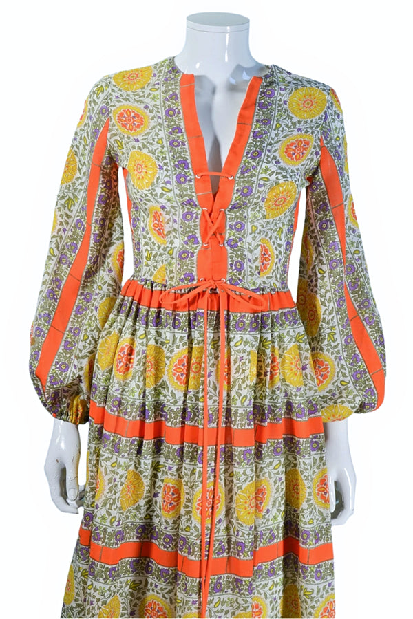 Rare Ramona Rull 60s/70s Block Print Maxi Dress P/S