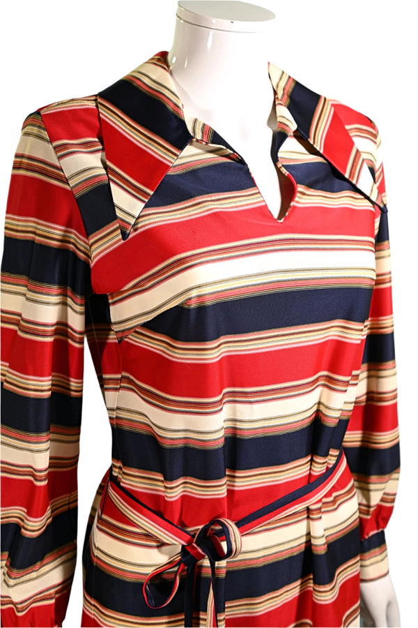 60s Micro Mini Shift Dress w/Belt, Striped Mini Dress S