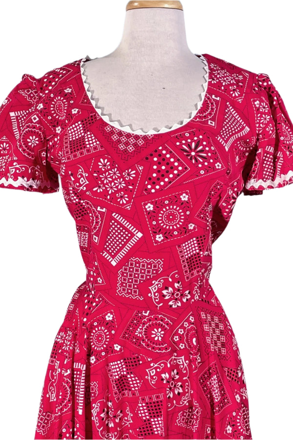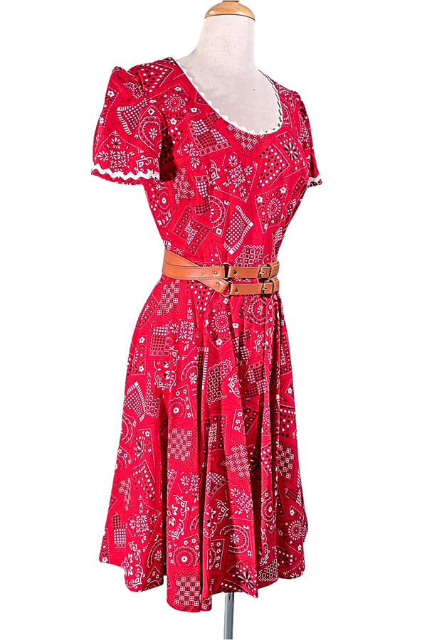 Bandana Print Square Dance Dress, Rockabilly Full Skirt Dress 26" Waist