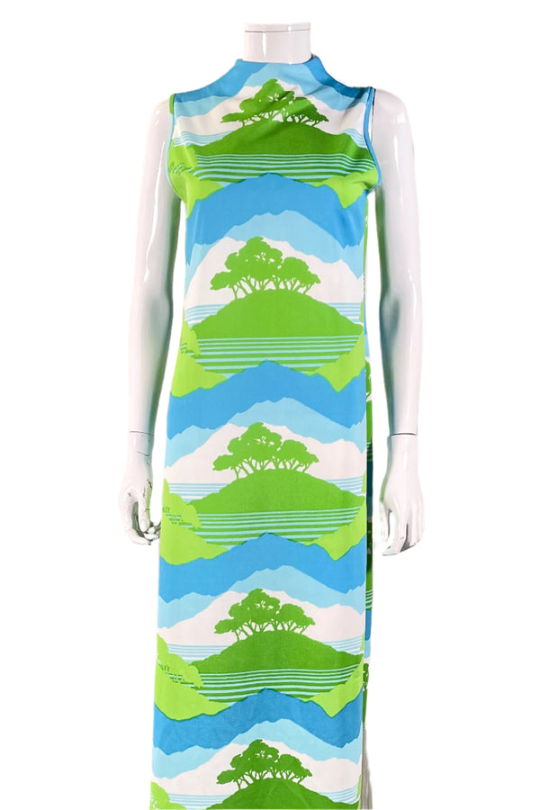 Vintage Maxi Dress Trees/Nature/Novelty Print, Bohemian Hippie Dress S