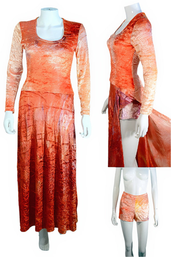 RARE 60s/70s Tie Dyed Velvet Maxi Dress + Hot Pants S/XS