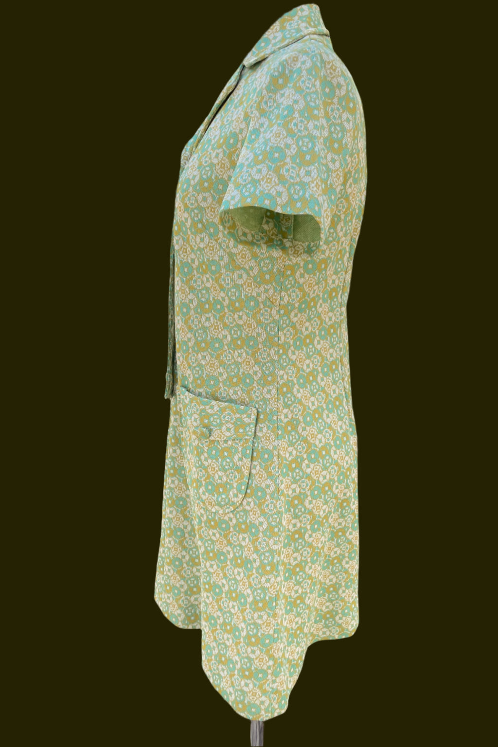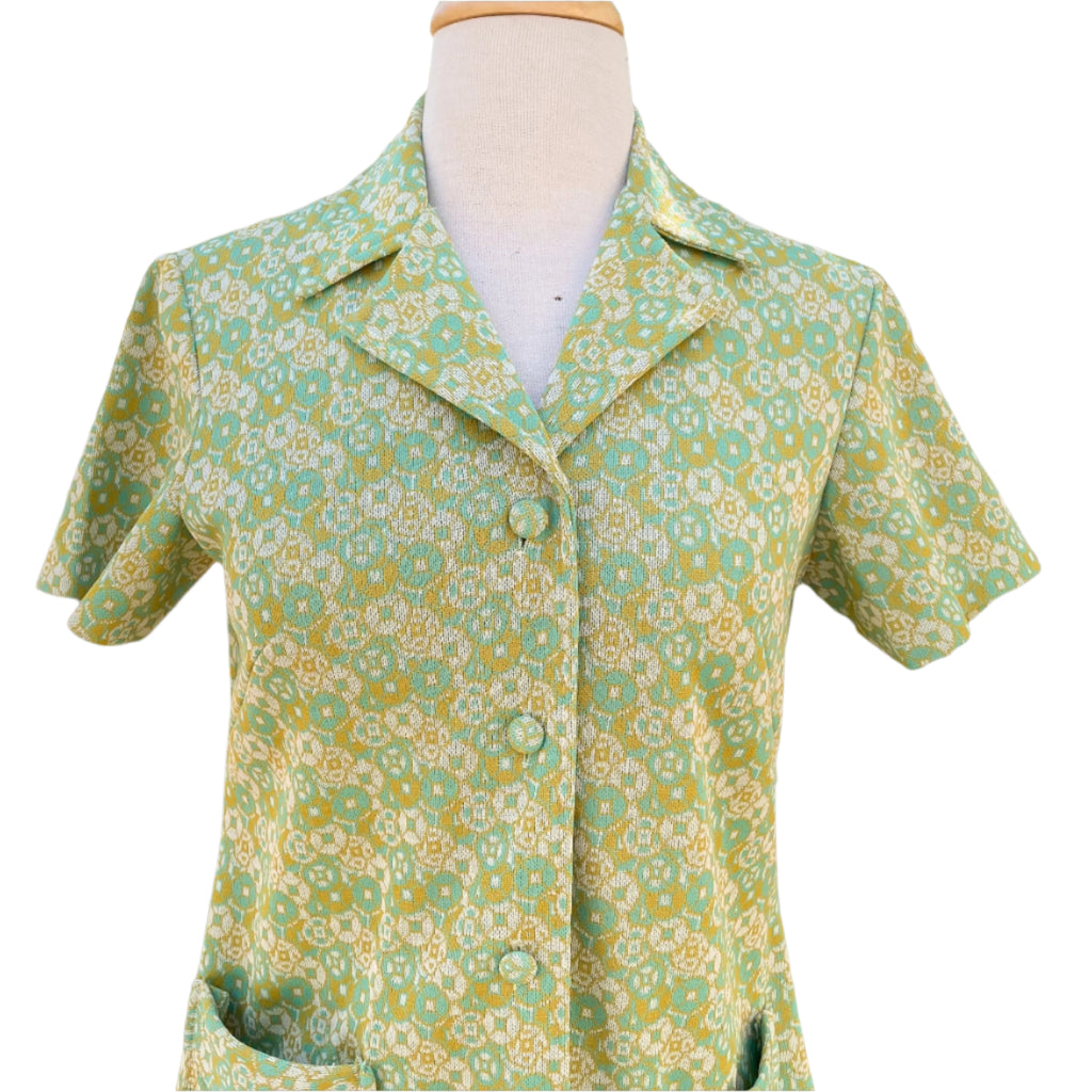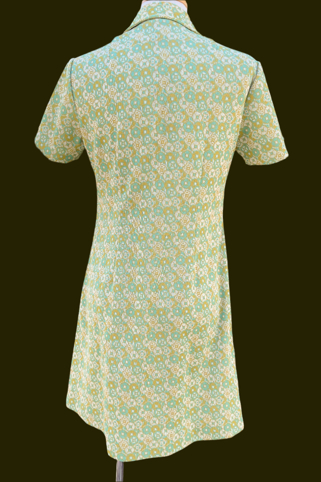 60s Mod Knit Dress, 70s A Line Print Mini Dress S