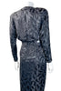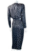Tone on tone black silk pattern, Wide shoulders with pads, long dolman style sleeves.