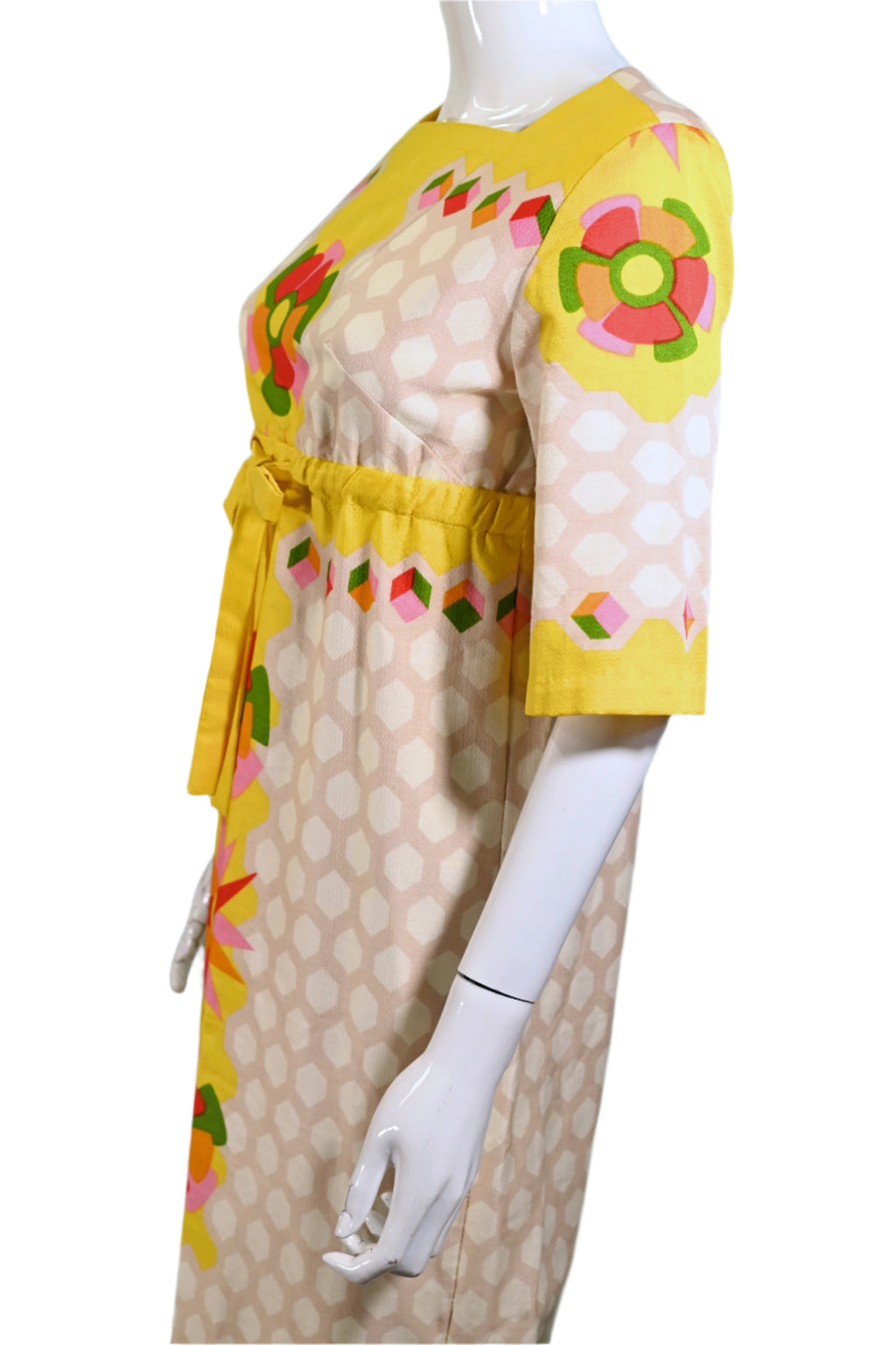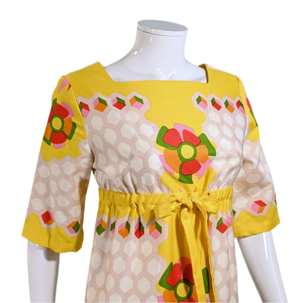 Alex Coleman 60s Mod Hippie Maxi Dress, Empire Waist Floral Print Dress