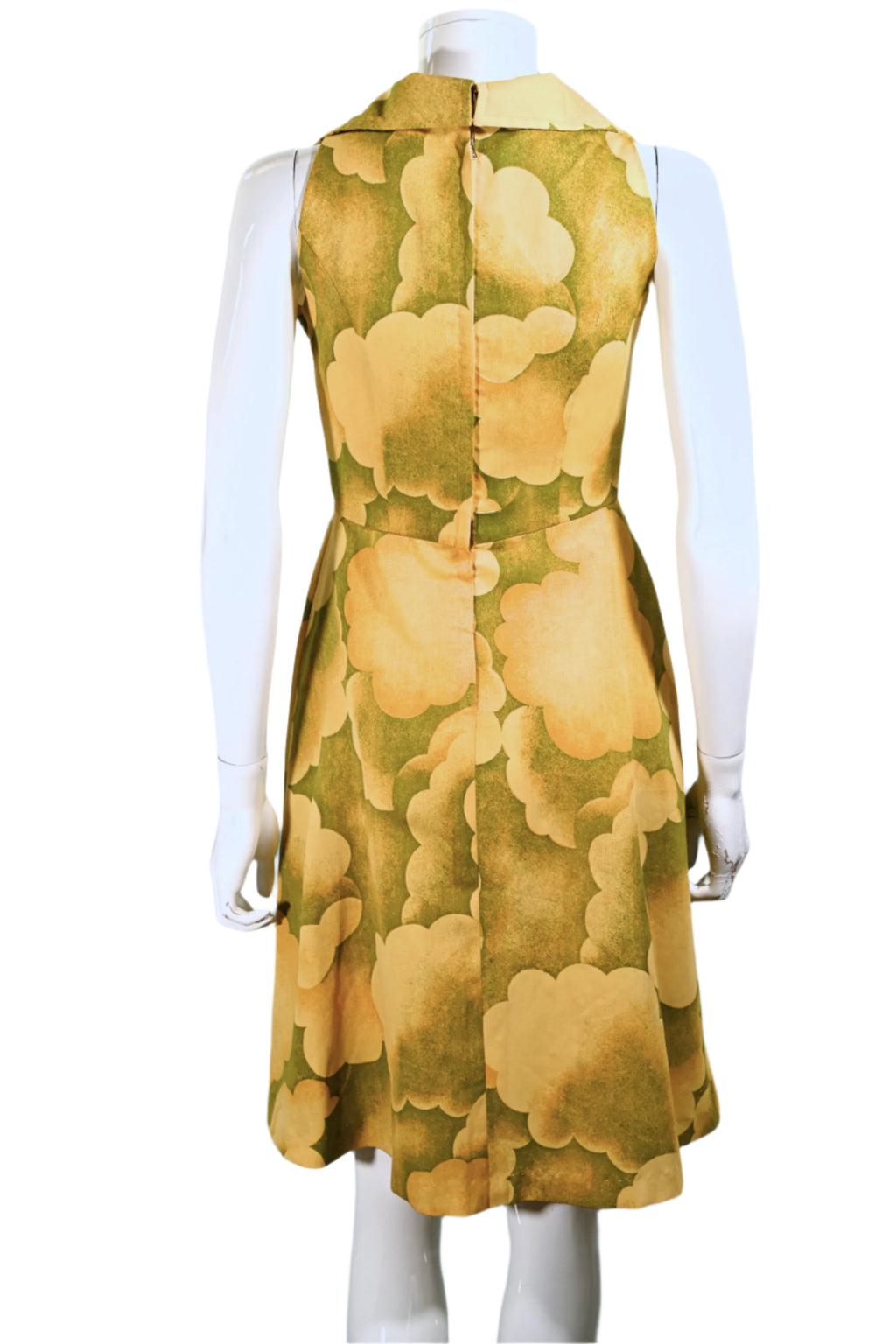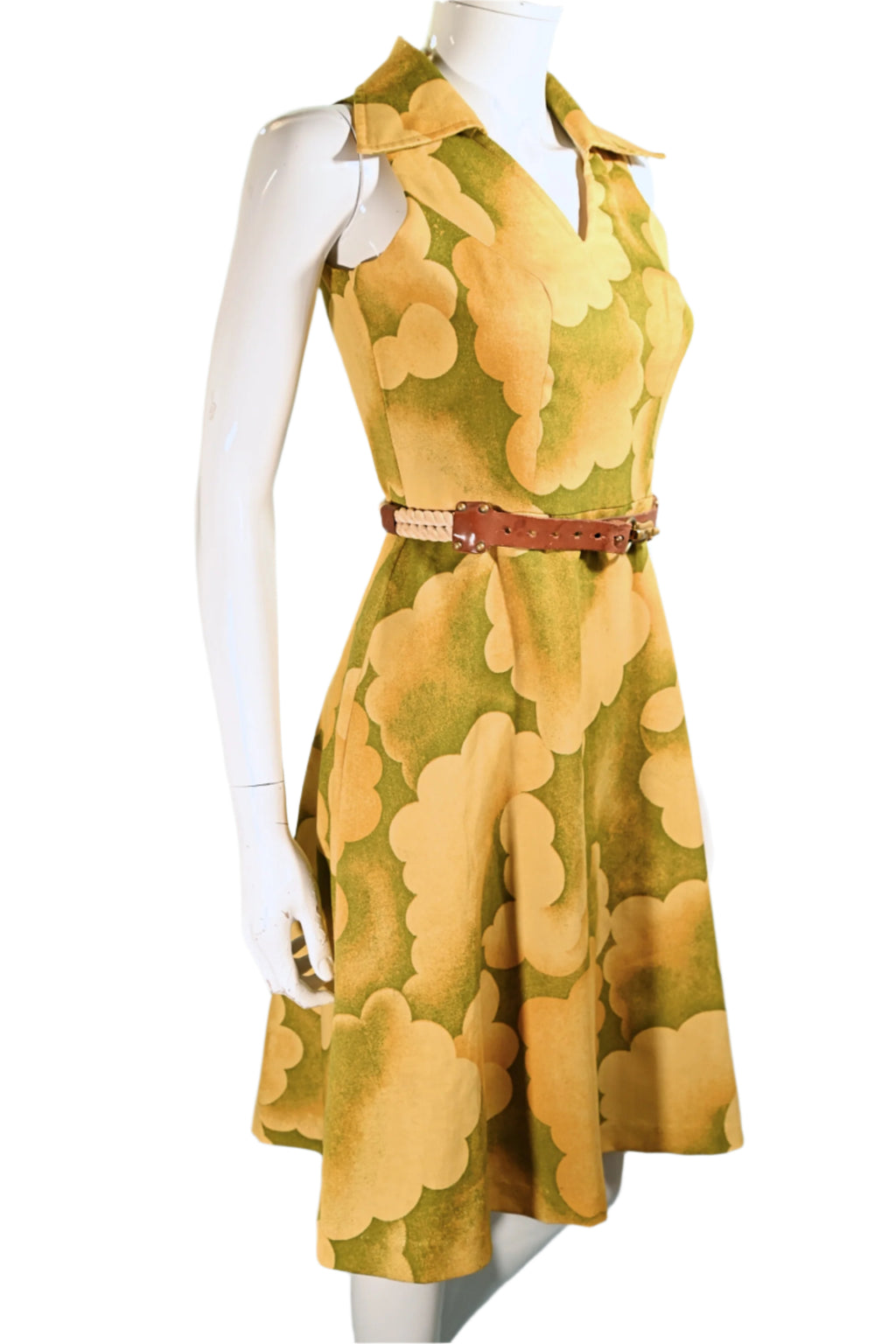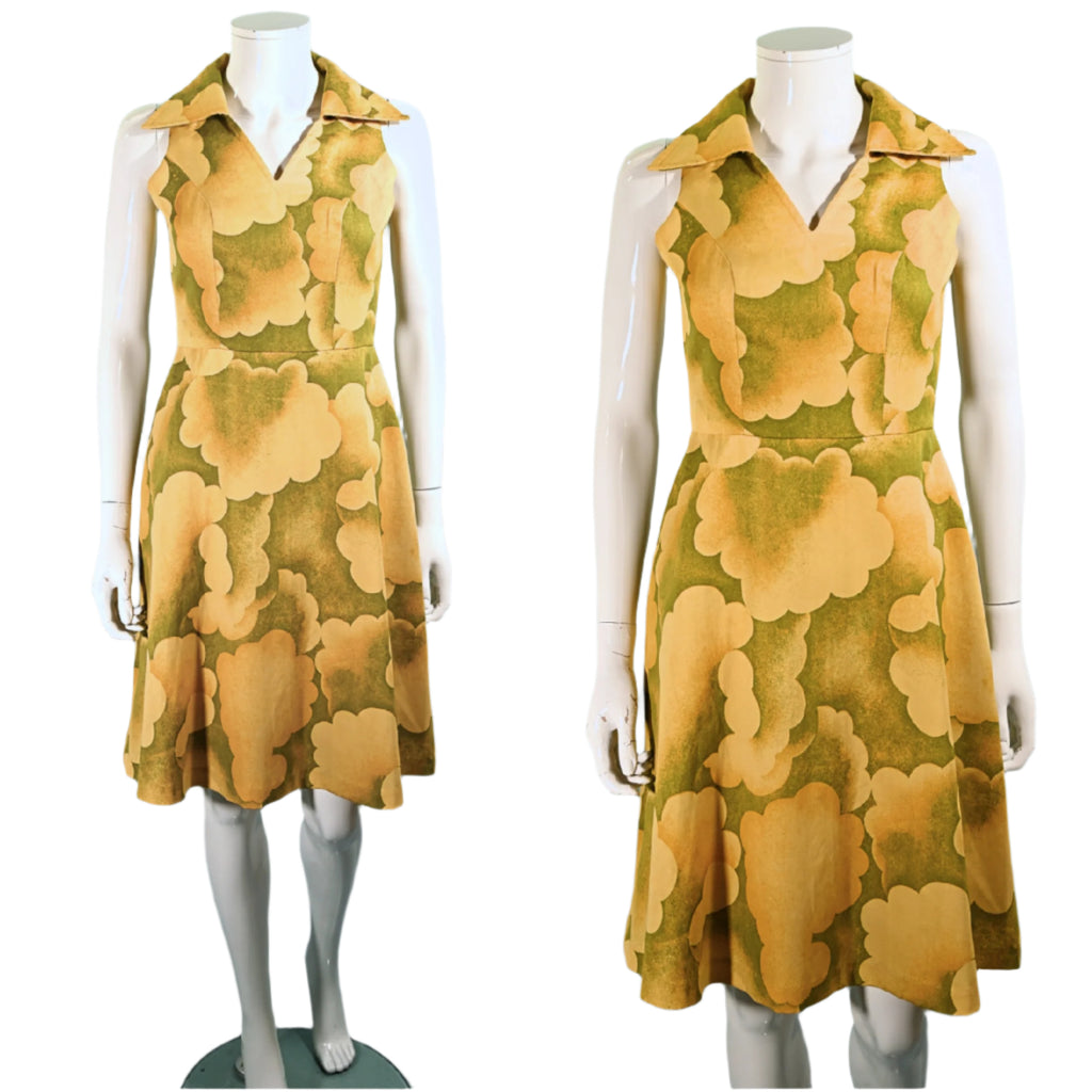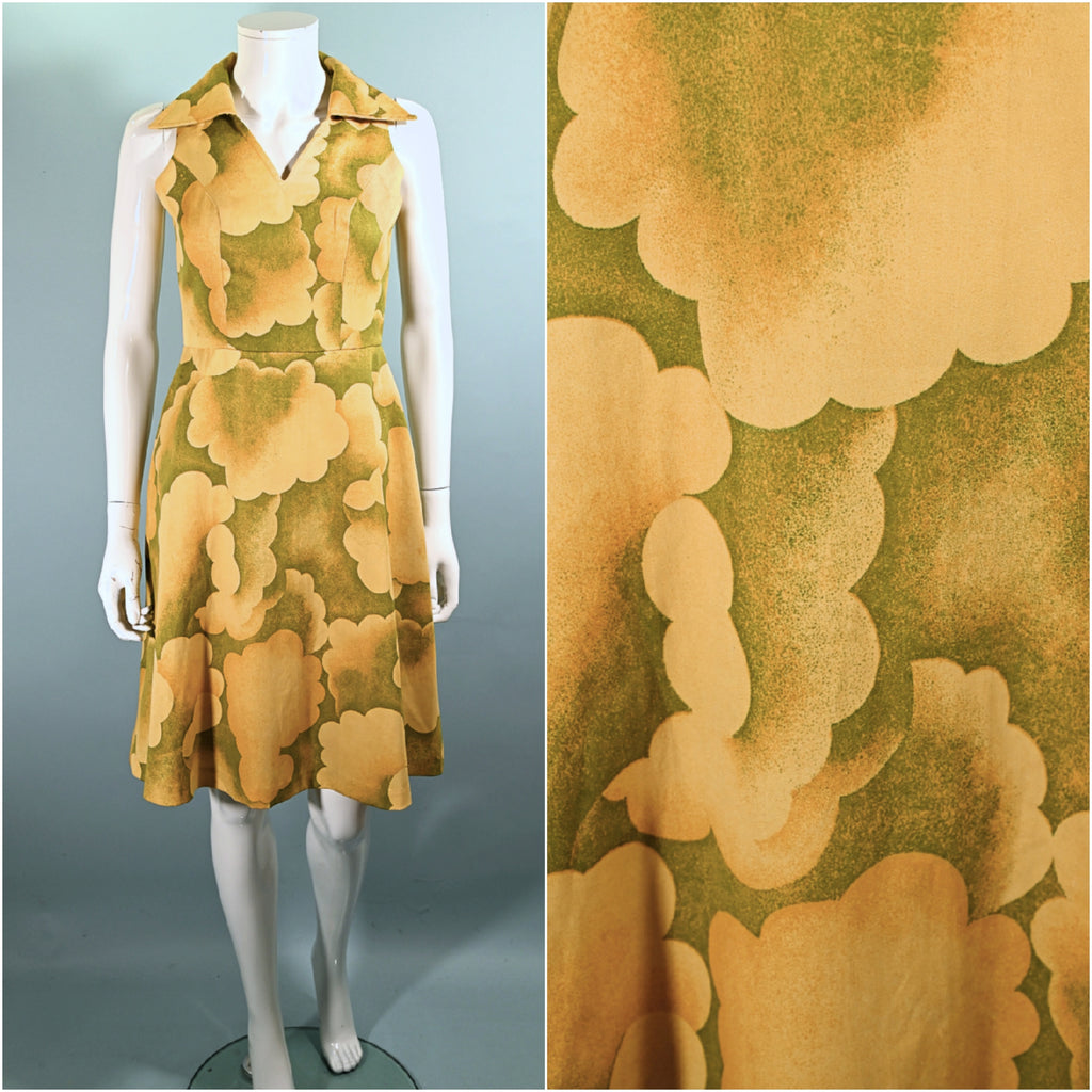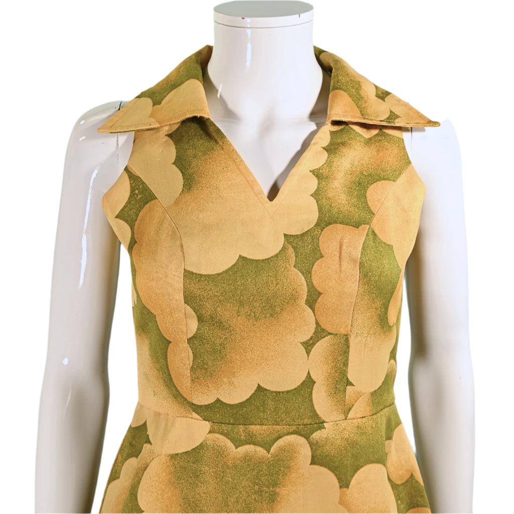 Vintage 60s Cloud Print Dress, 70s Sleeveless Summer Dress M
