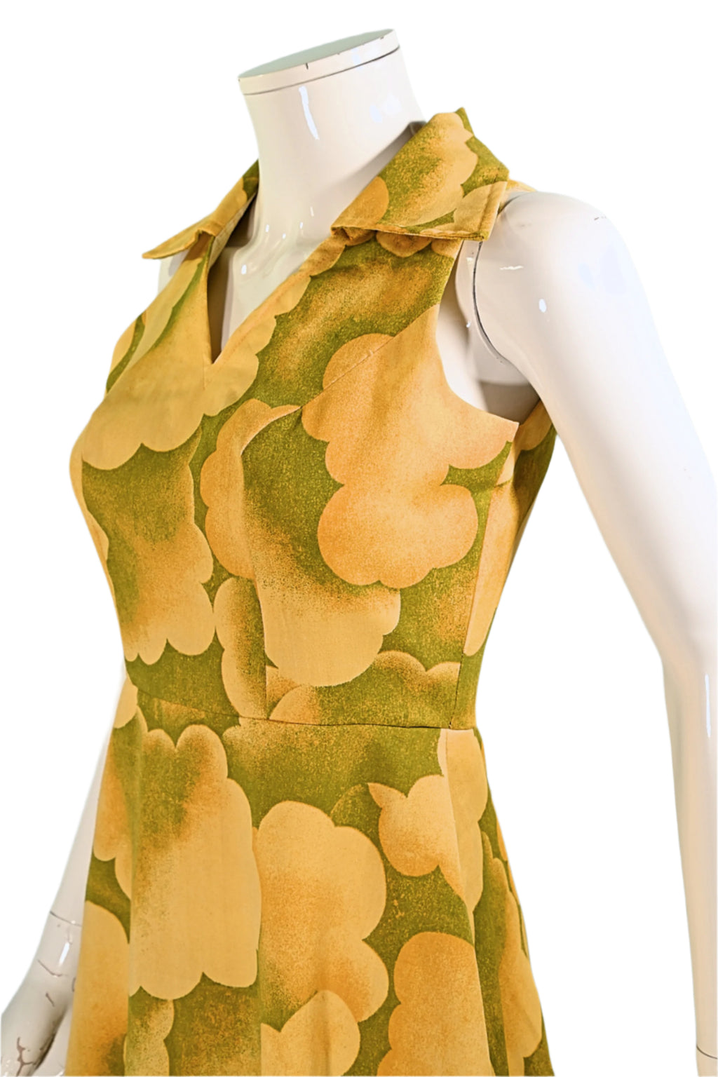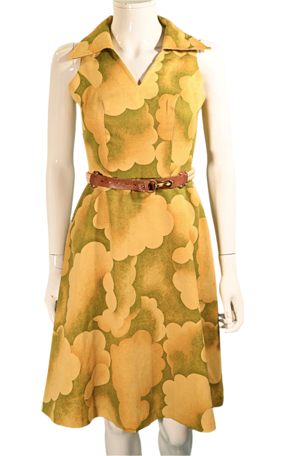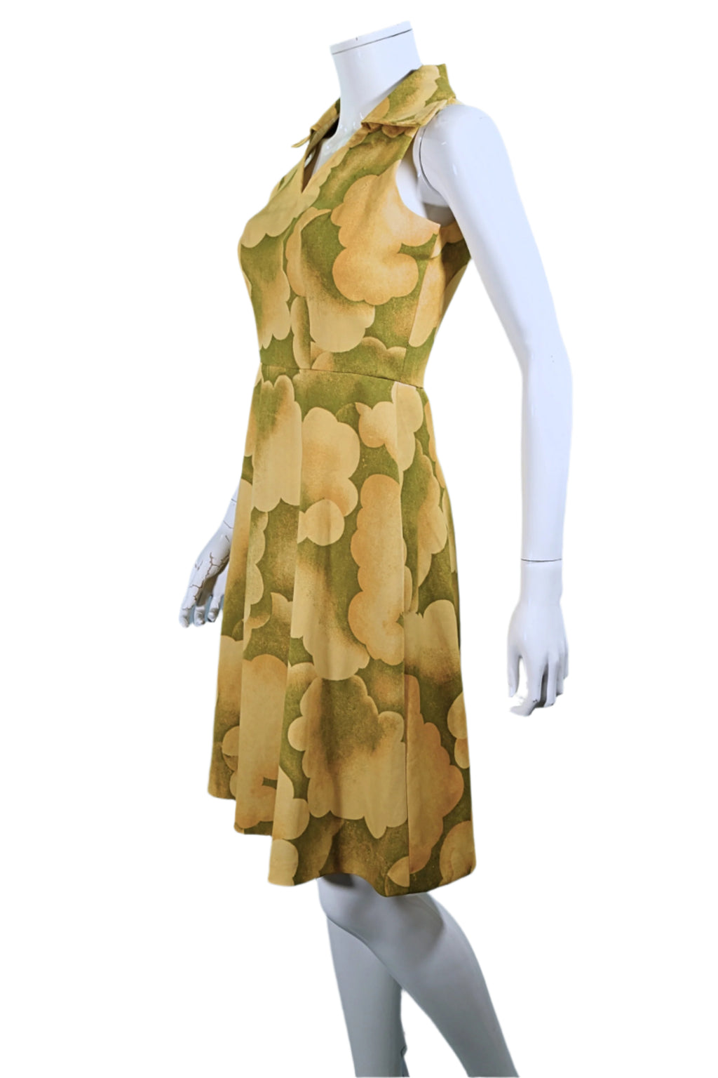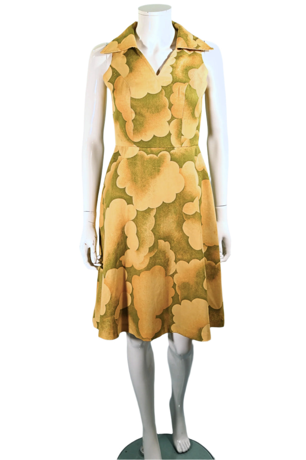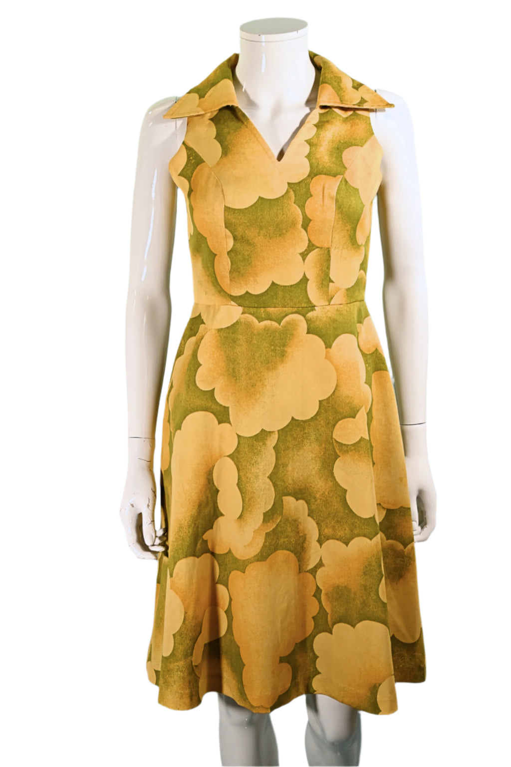 Vintage 60s Cloud Print Dress, 70s Sleeveless Summer Dress M