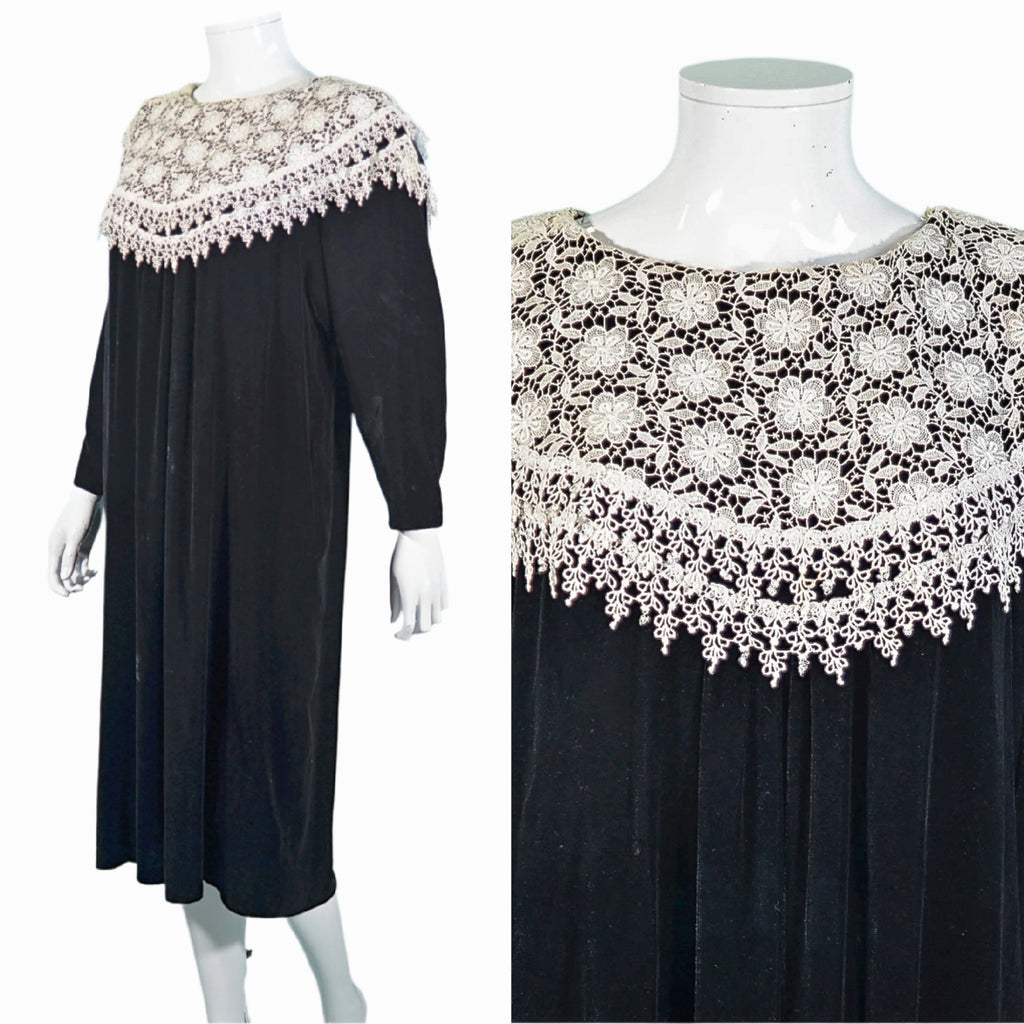 The dress is a relaxed fit with a huge double-layer lace collar.