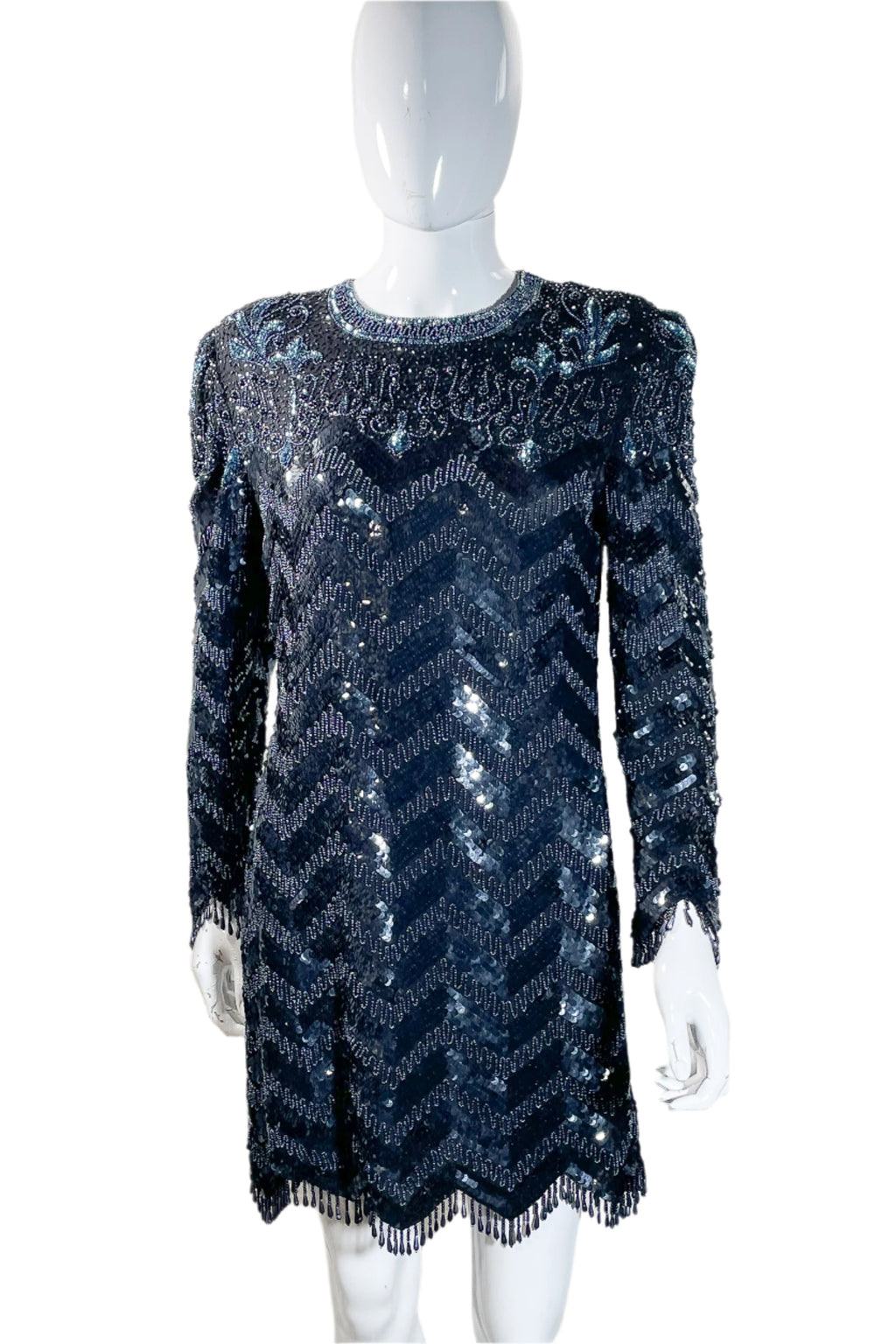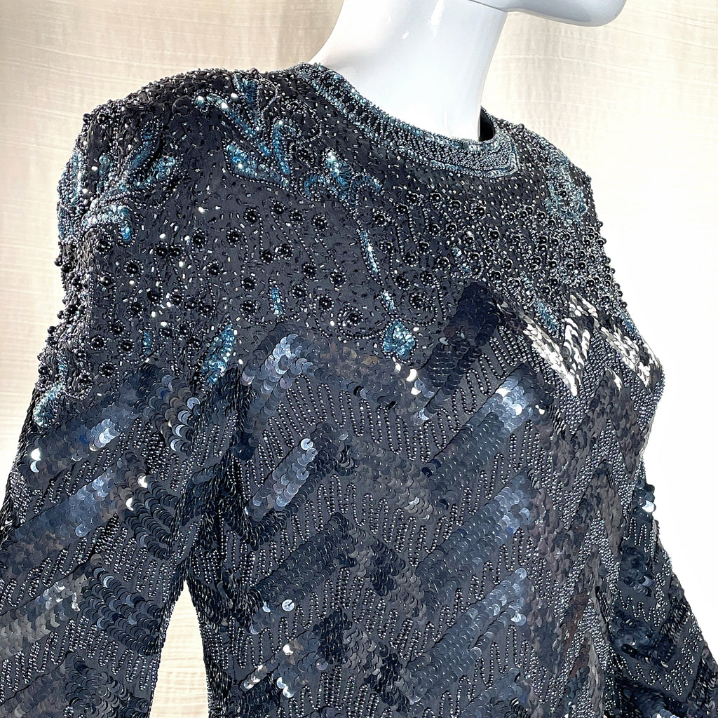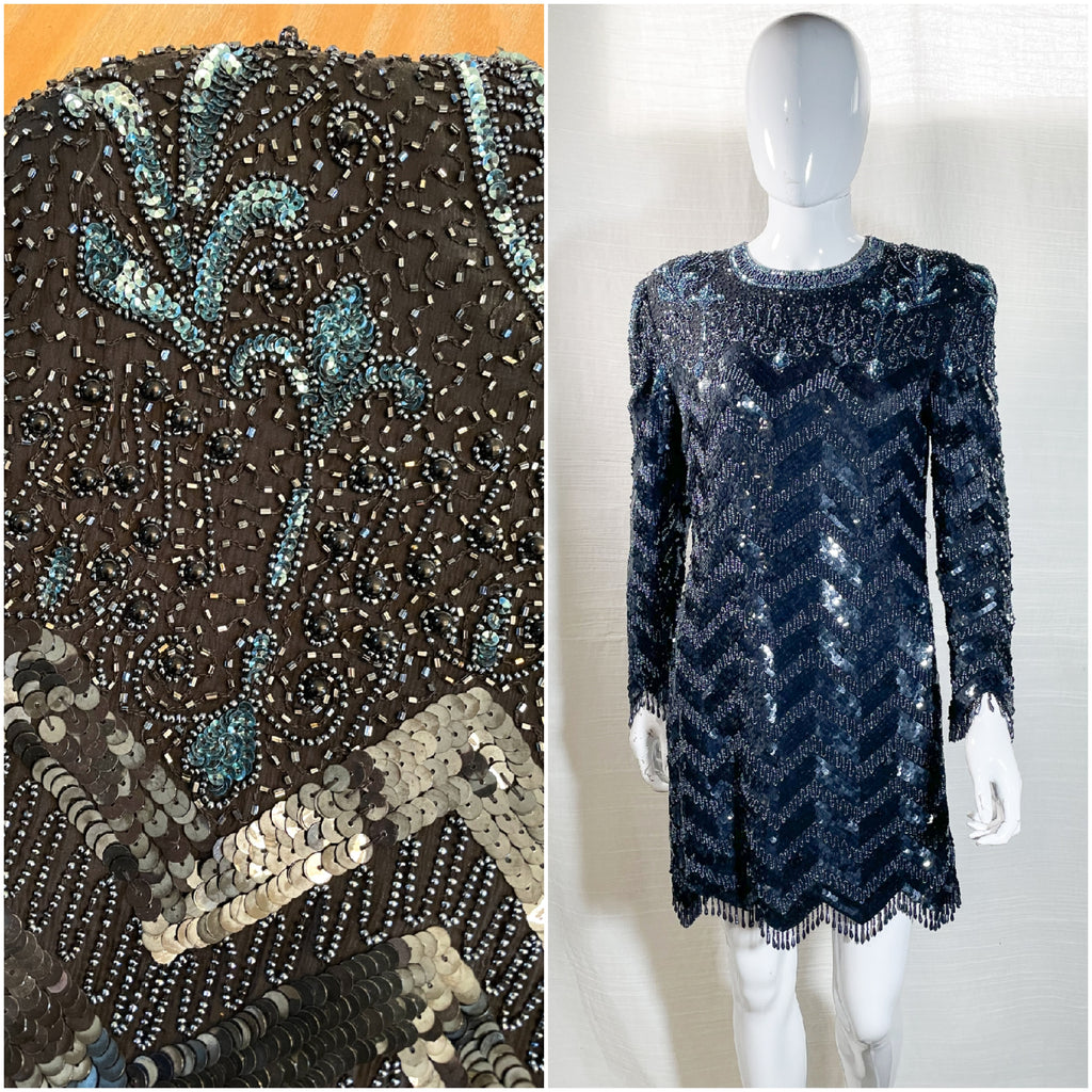 Vintage Black & Blue Beaded Sequin Mini Dress S/M