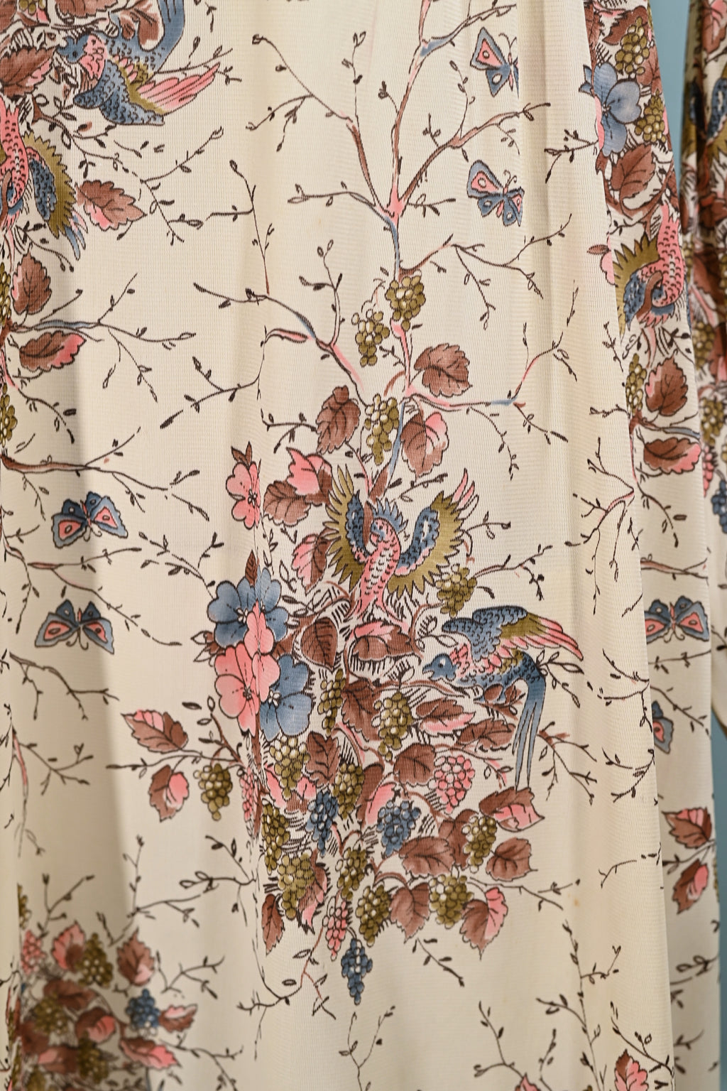 CONDITION: Overall, very good. Some signs of wear along the empire waist. It is covered by the sash belt.