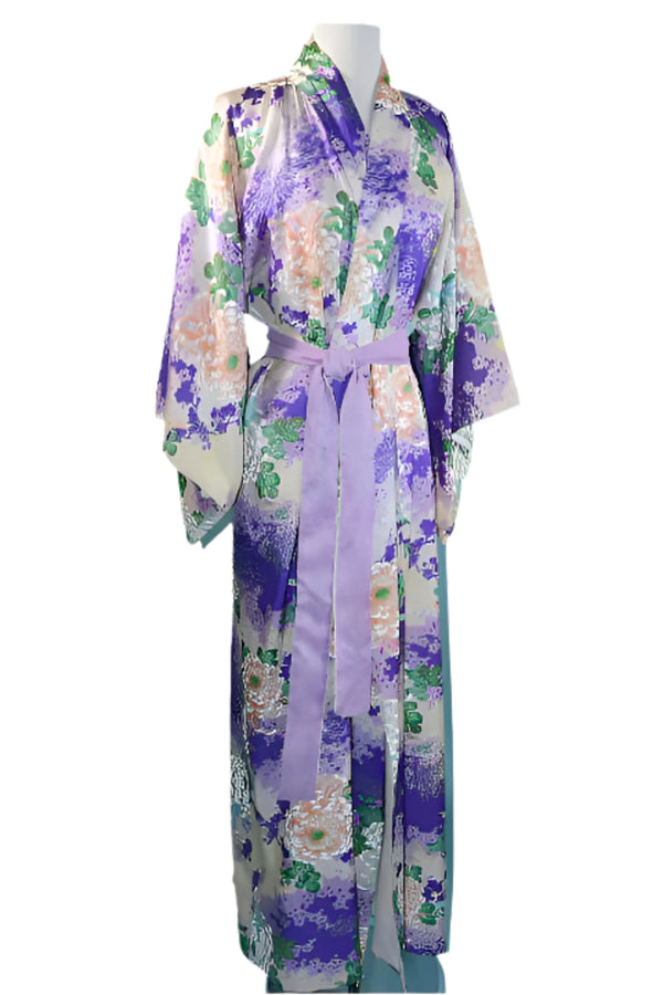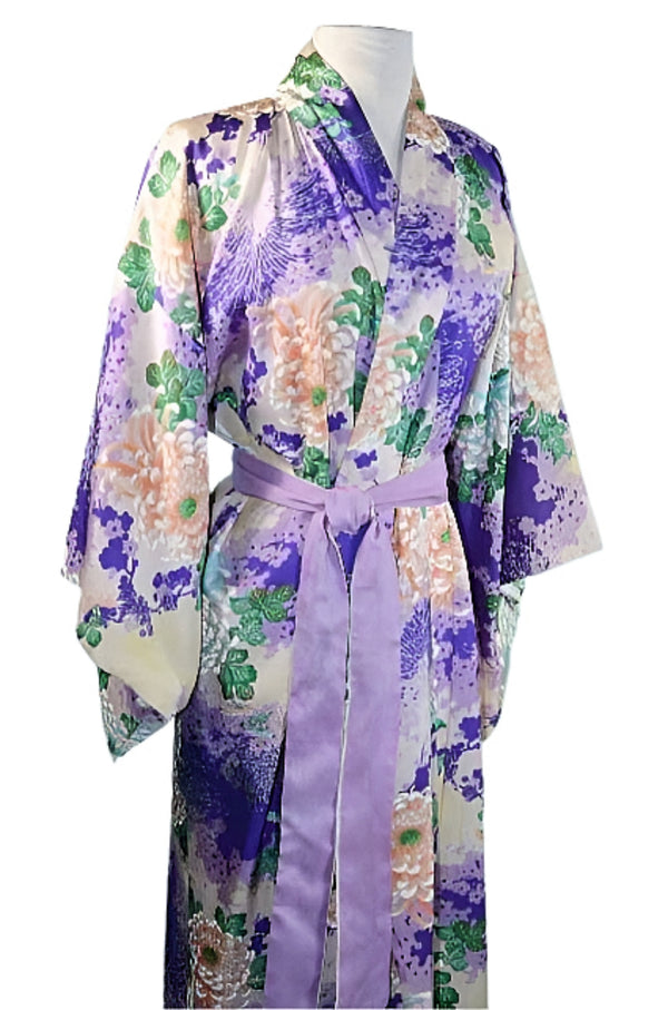 Vintage Lavender Silk Floral Japanese Kimono, Asian Lounge Wear
