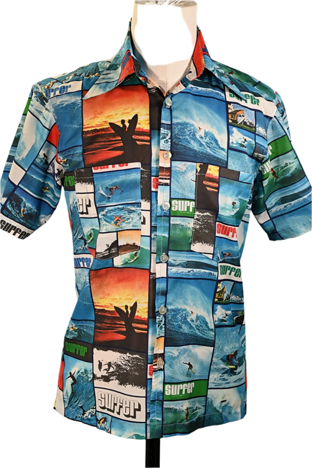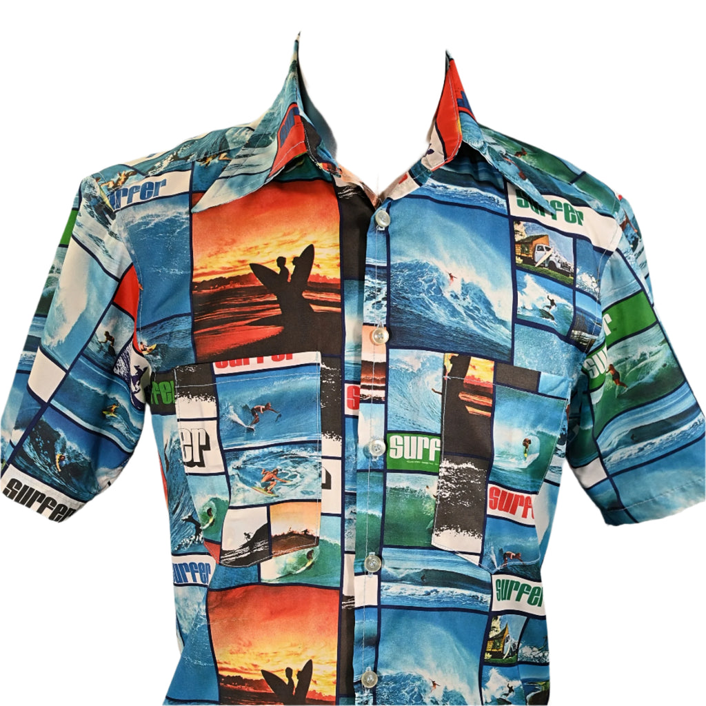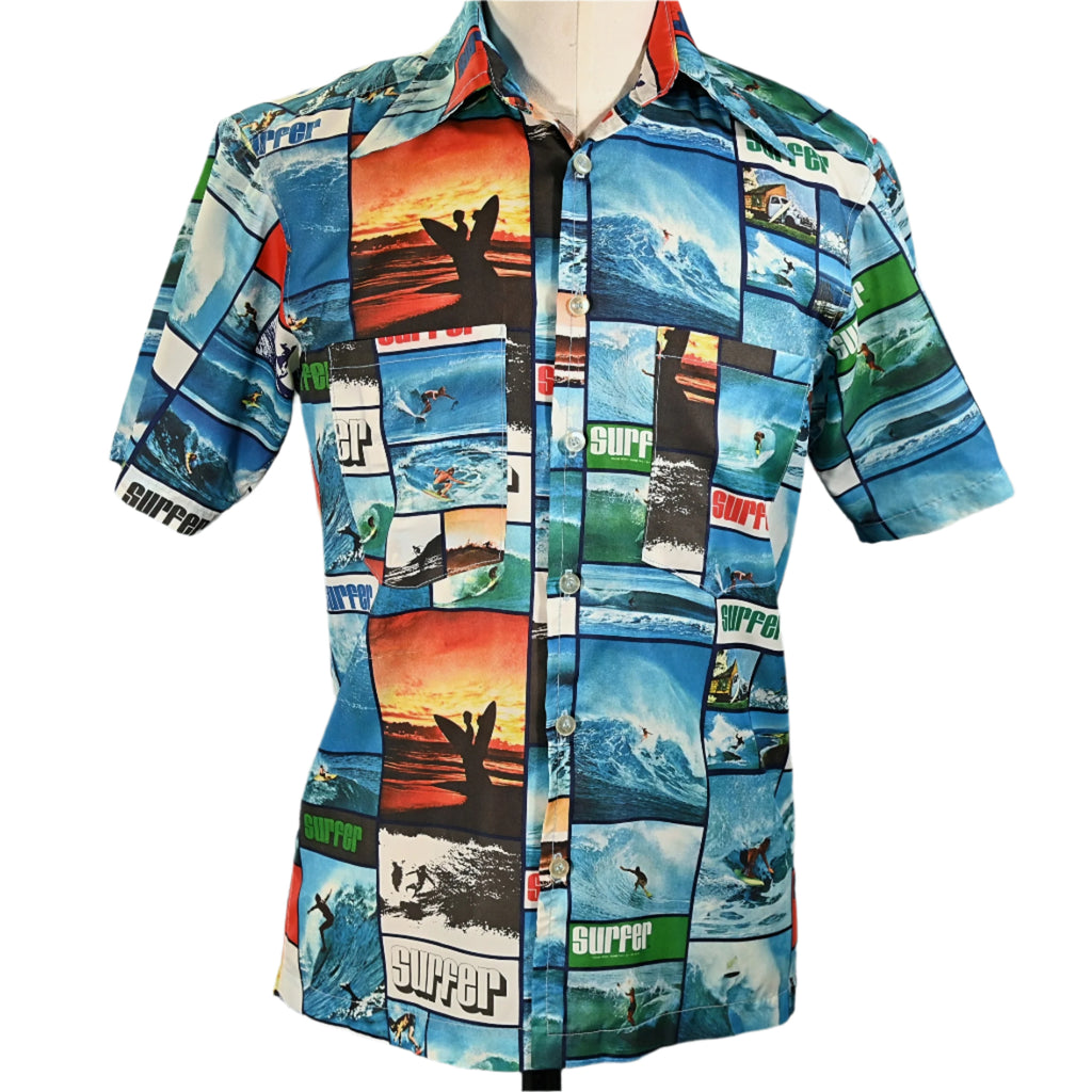 Vintage 70s Surfer Magazine photo realist Hawaiian shirt.