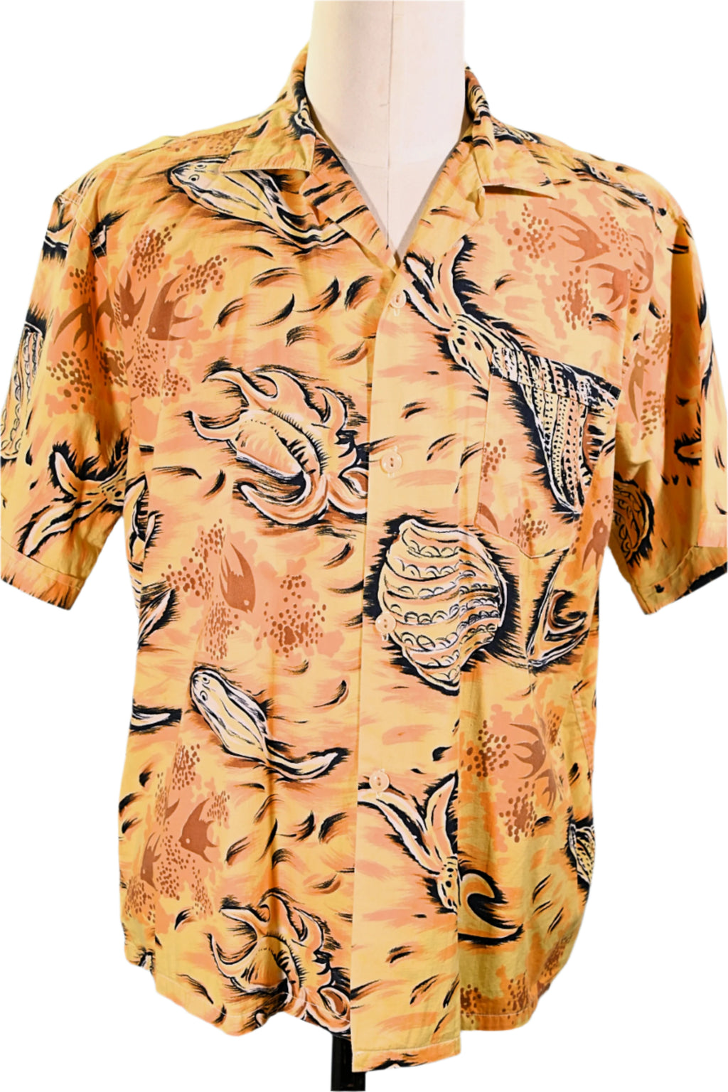Paradise 50s Vintage Hawaiian Shirt, Fish Seashells Underwater Aloha Shirt, L