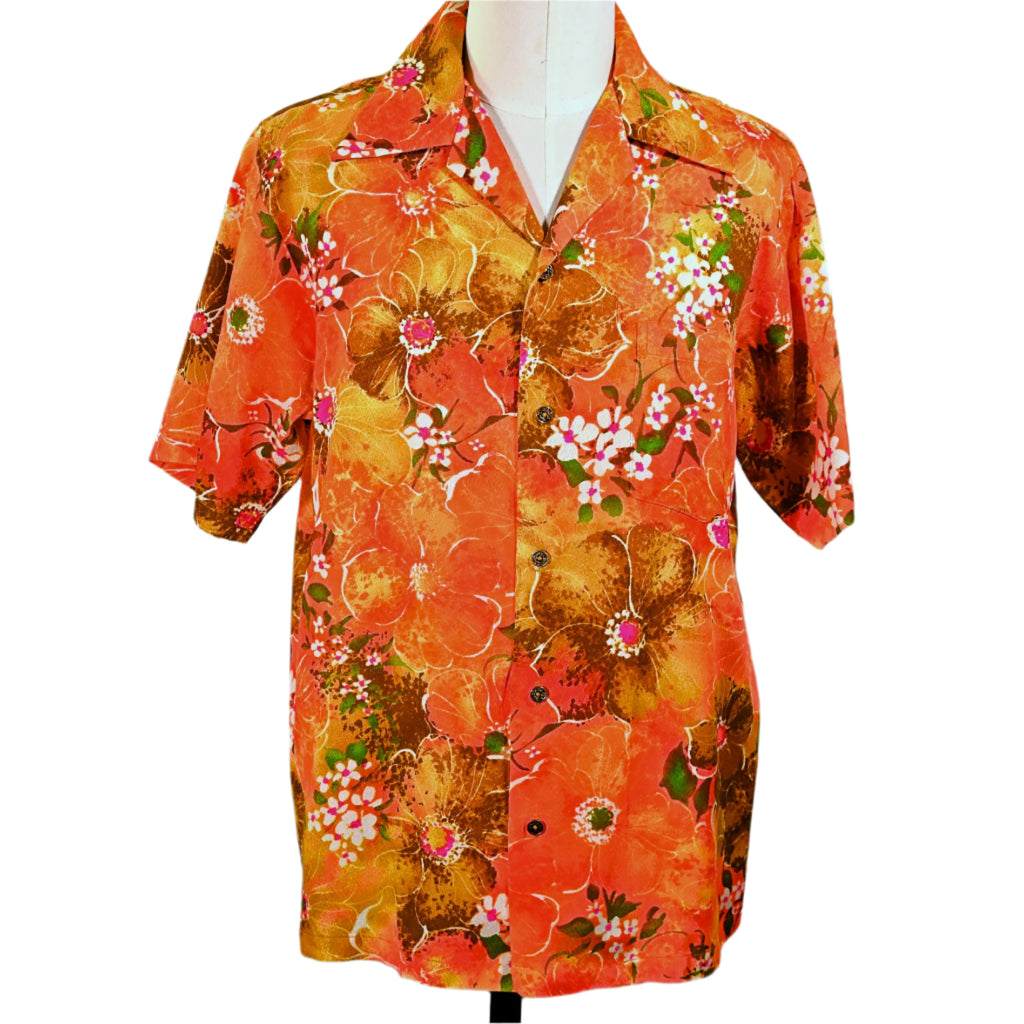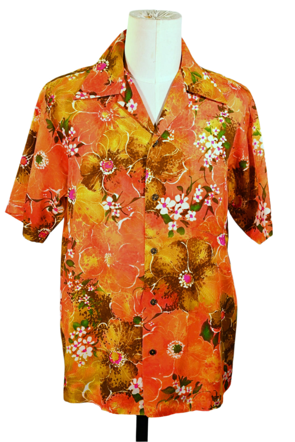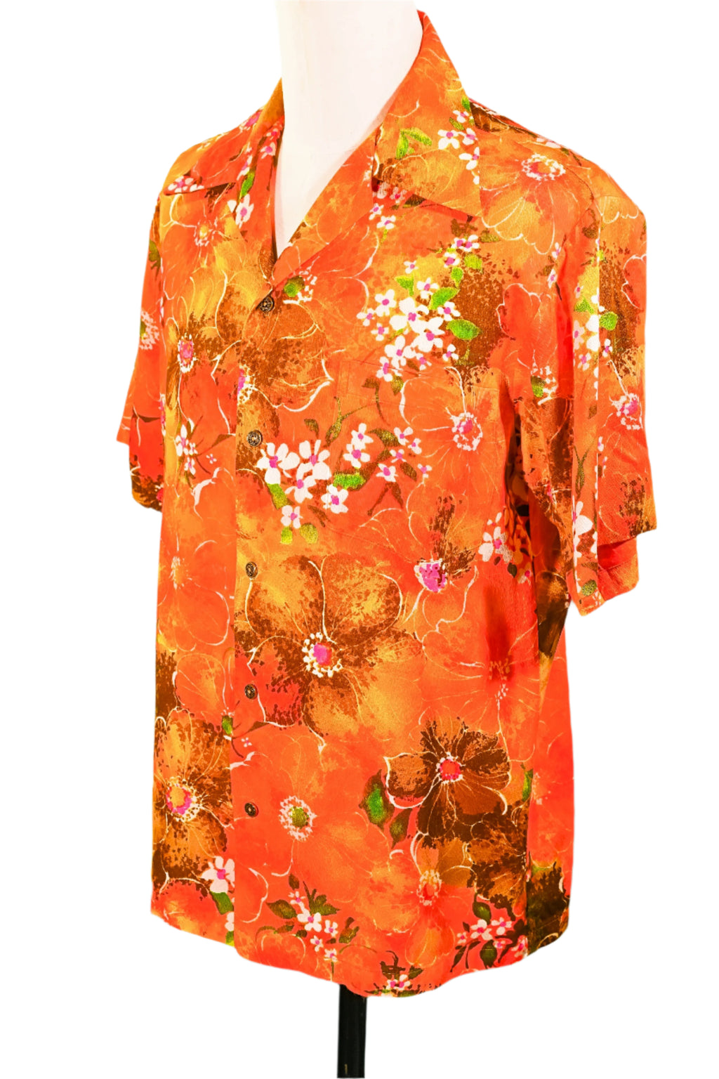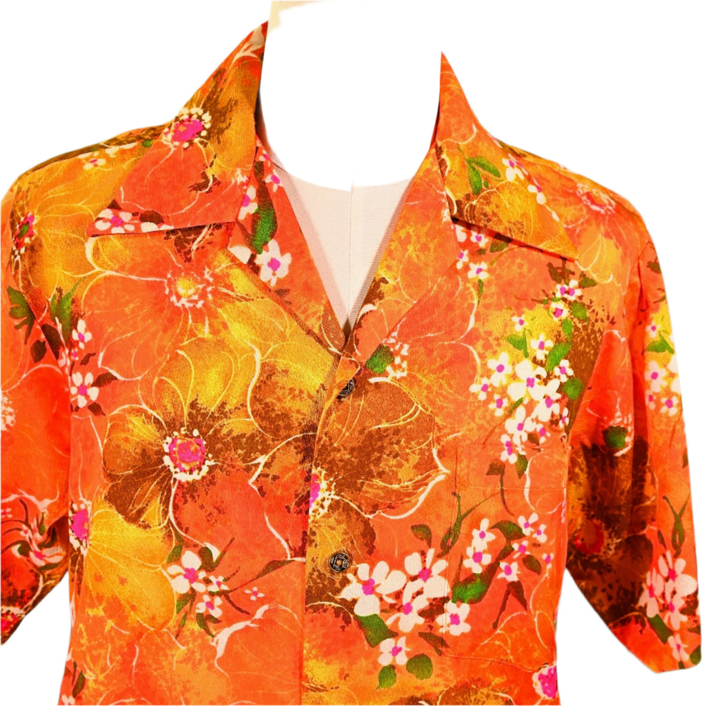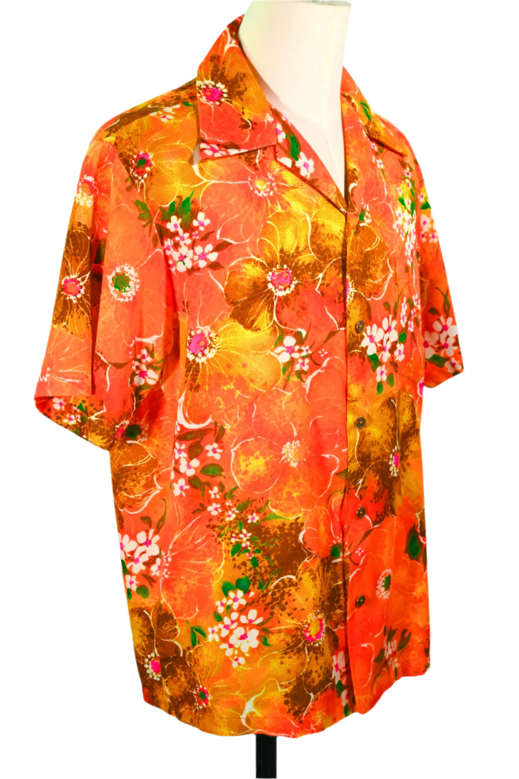 Super fun 70s neon-bright Hawaiian Aloha shirt.