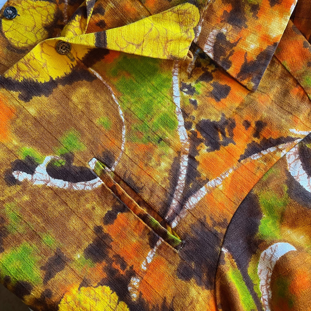 Vintage 70s Batik style bright Hawaiian shirt.