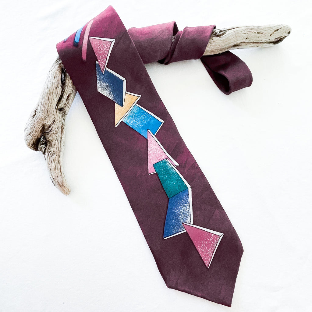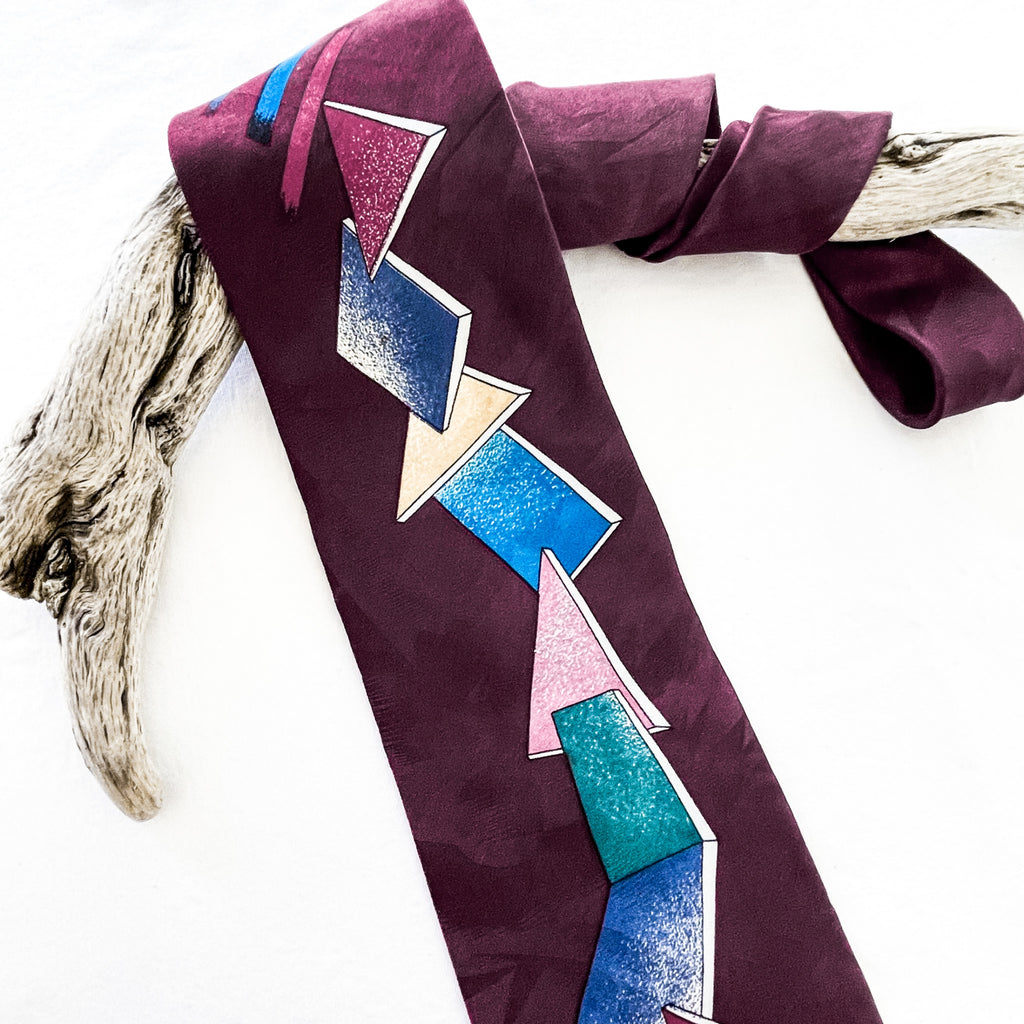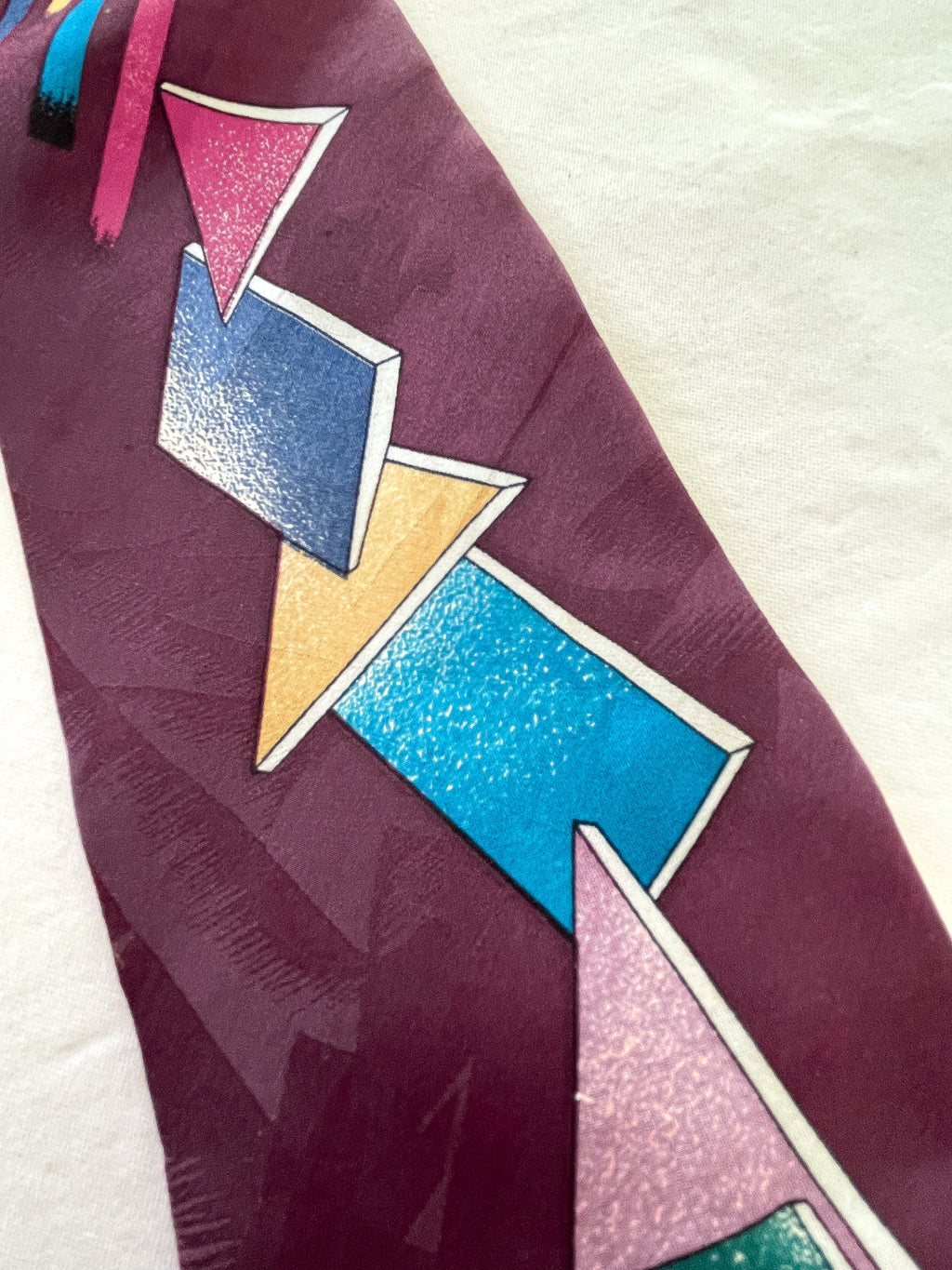 Pierre Balmain Couture Vintage Memphis Silk Tie, Bold Geometric Pattern 55" L x 3.75" W