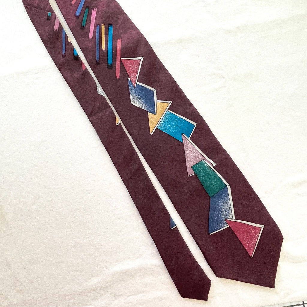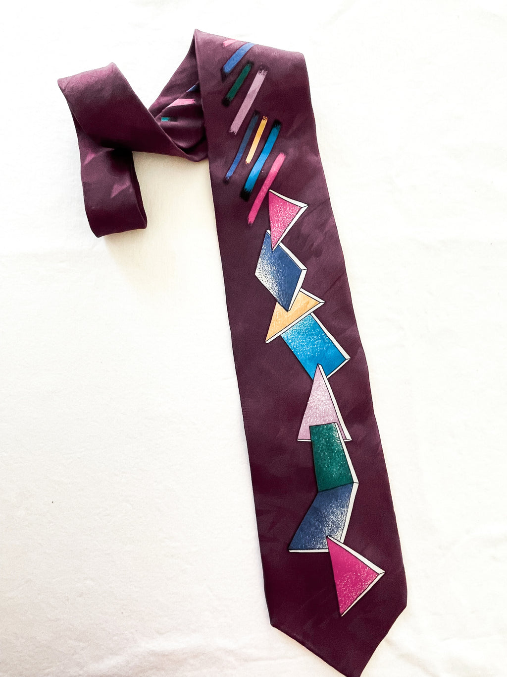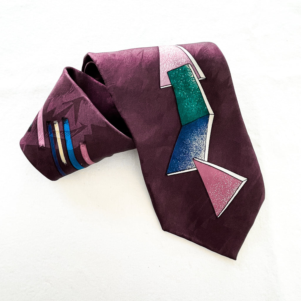 Pierre Balmain Couture Vintage Memphis Silk Tie, Bold Geometric Pattern 55" L x 3.75" W