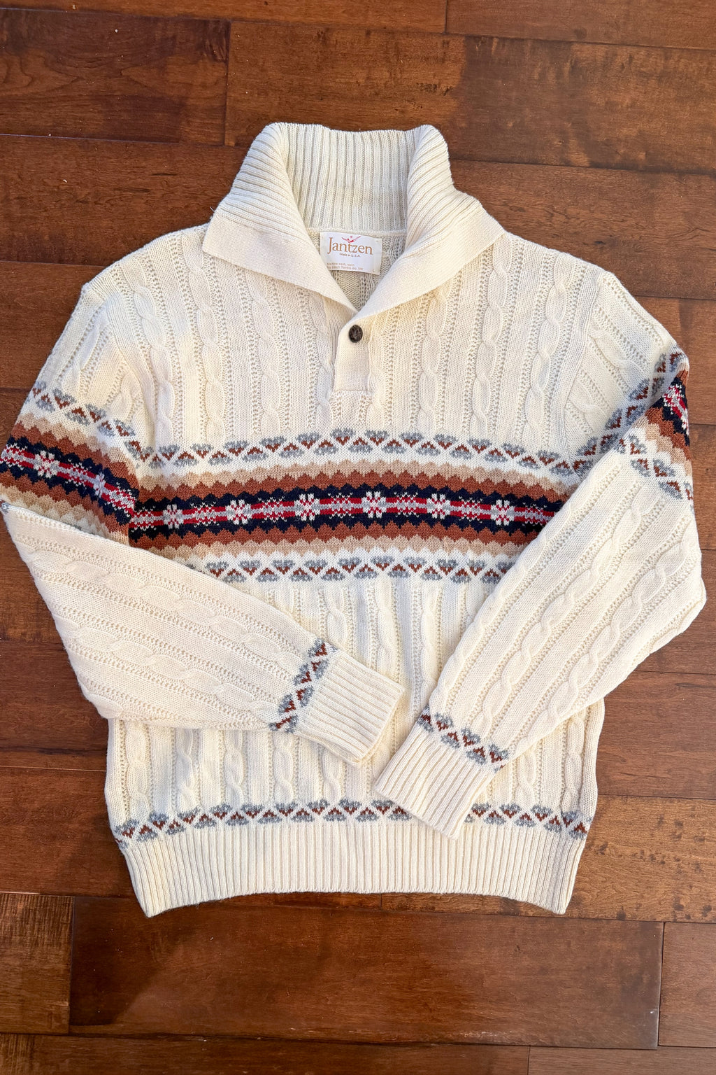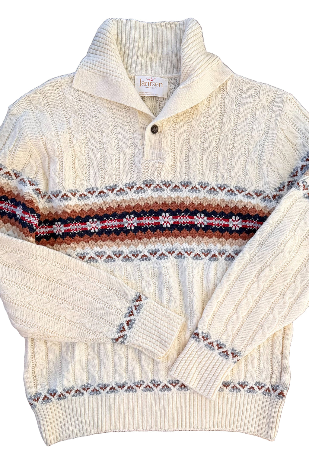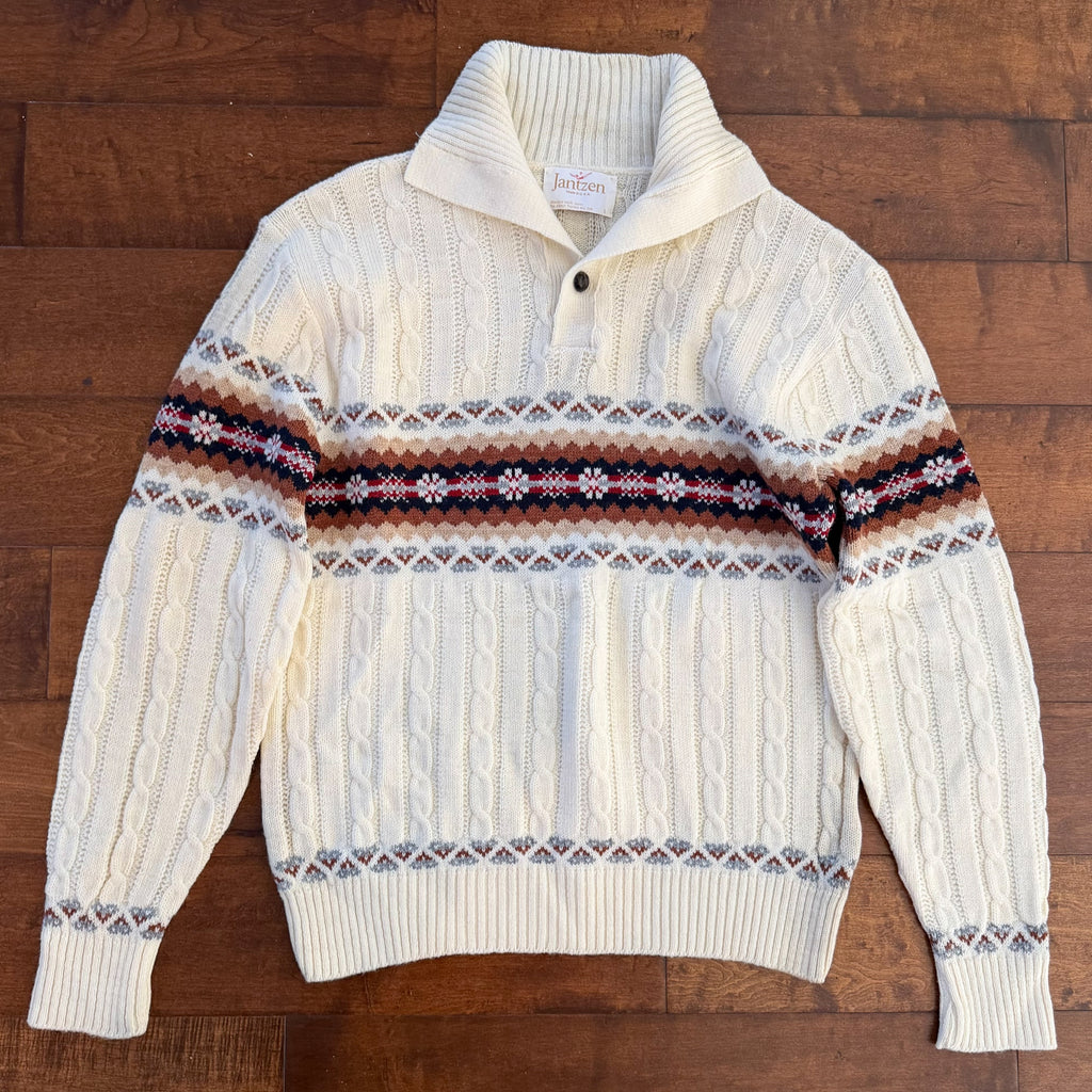 Cable knit, Faire Aisle pattern, long sleeve sweater.