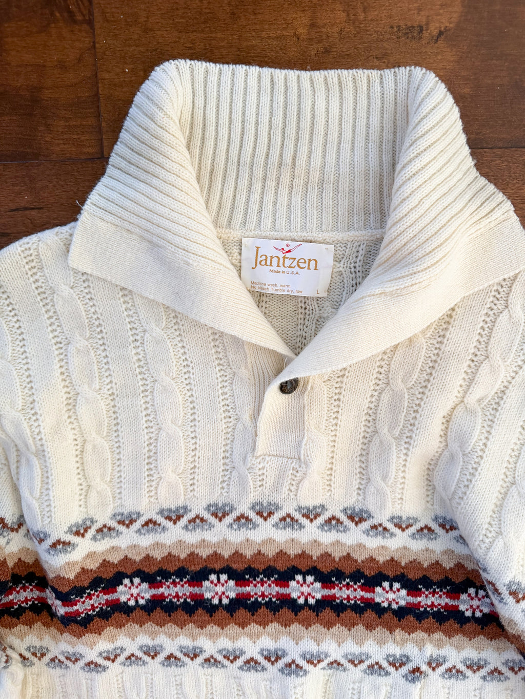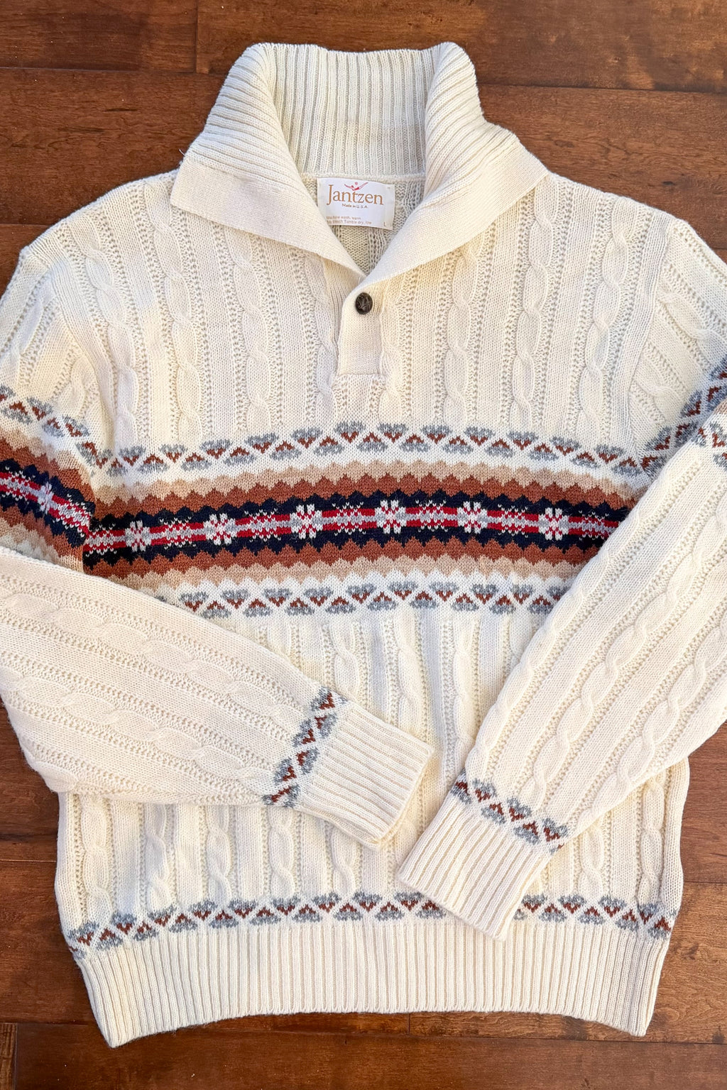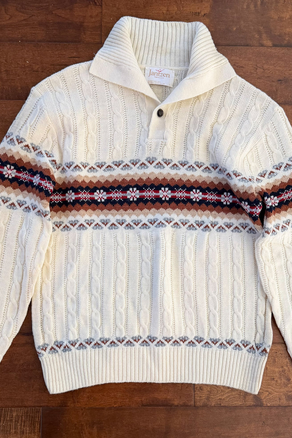 Cable knit, Faire Aisle pattern, long sleeve sweater.