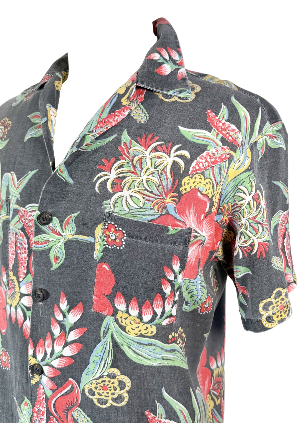 CONDITION: Well-worn, faded colors, very soft fabric. Frayed hemline in one area, not very noticeable.