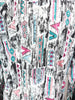 Color: White, pink, aqua, greys, black.