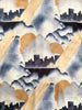 Buildings & clouds, Blues, grey, tan, beige, white.