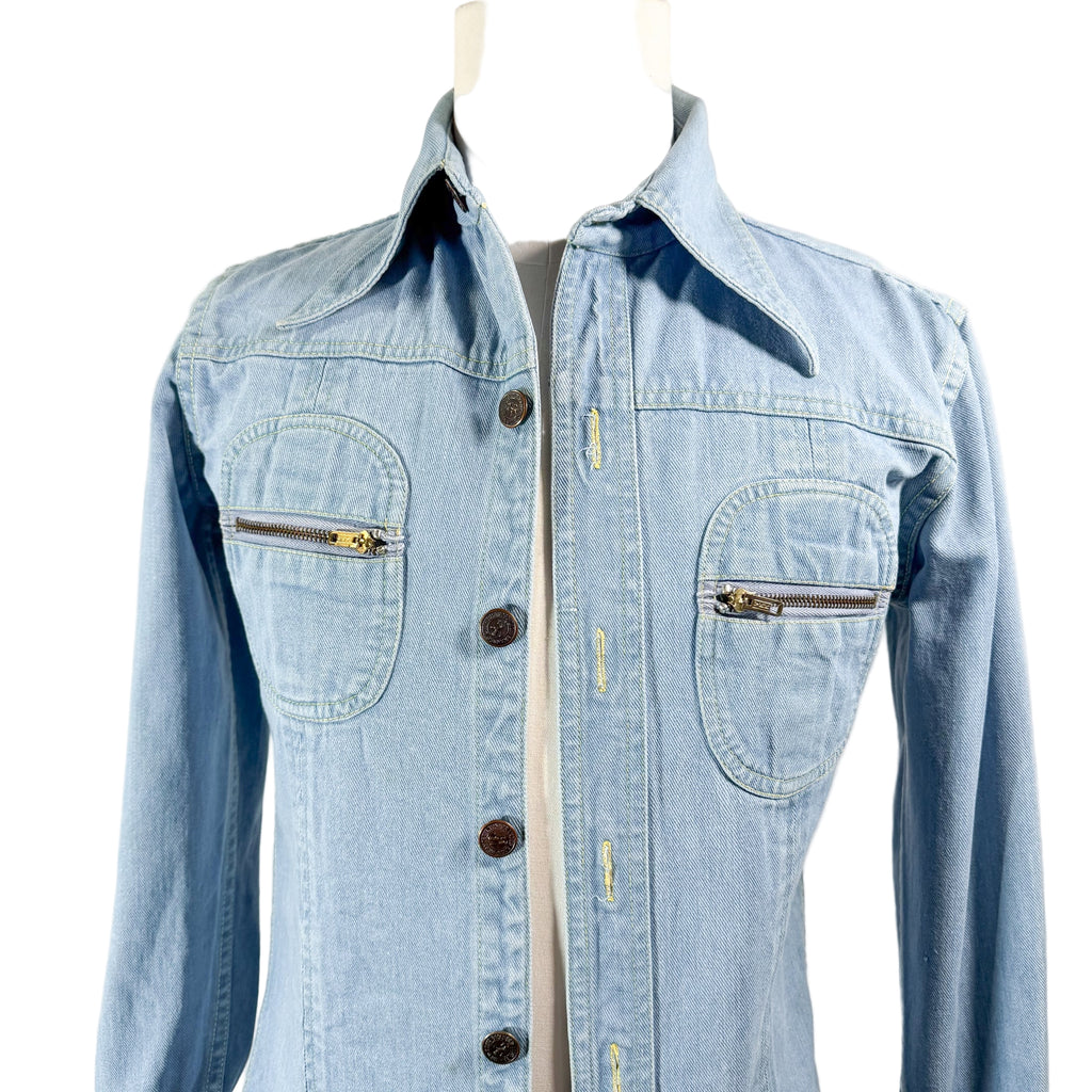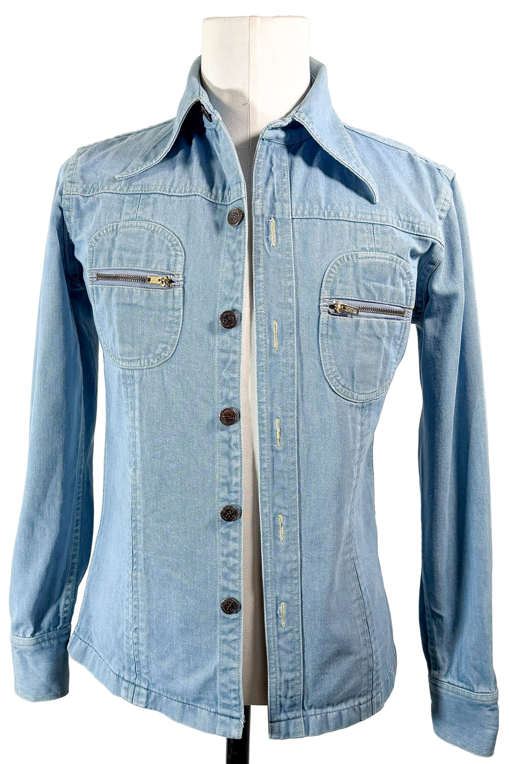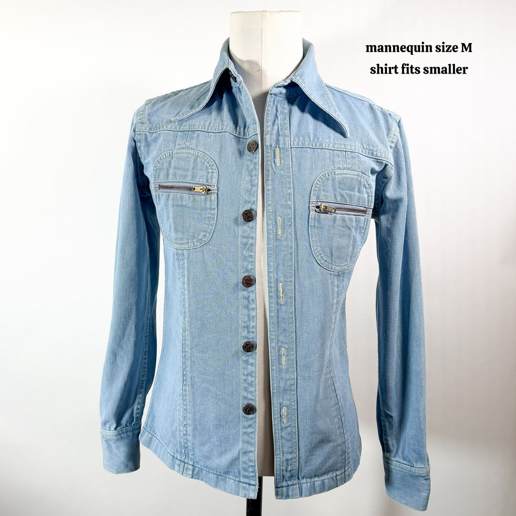 Vintage 60s Denim Shirt Light Wash, Branded Lion S/XS