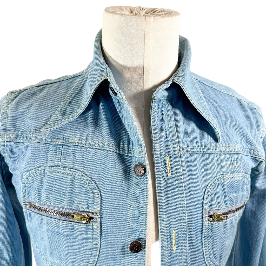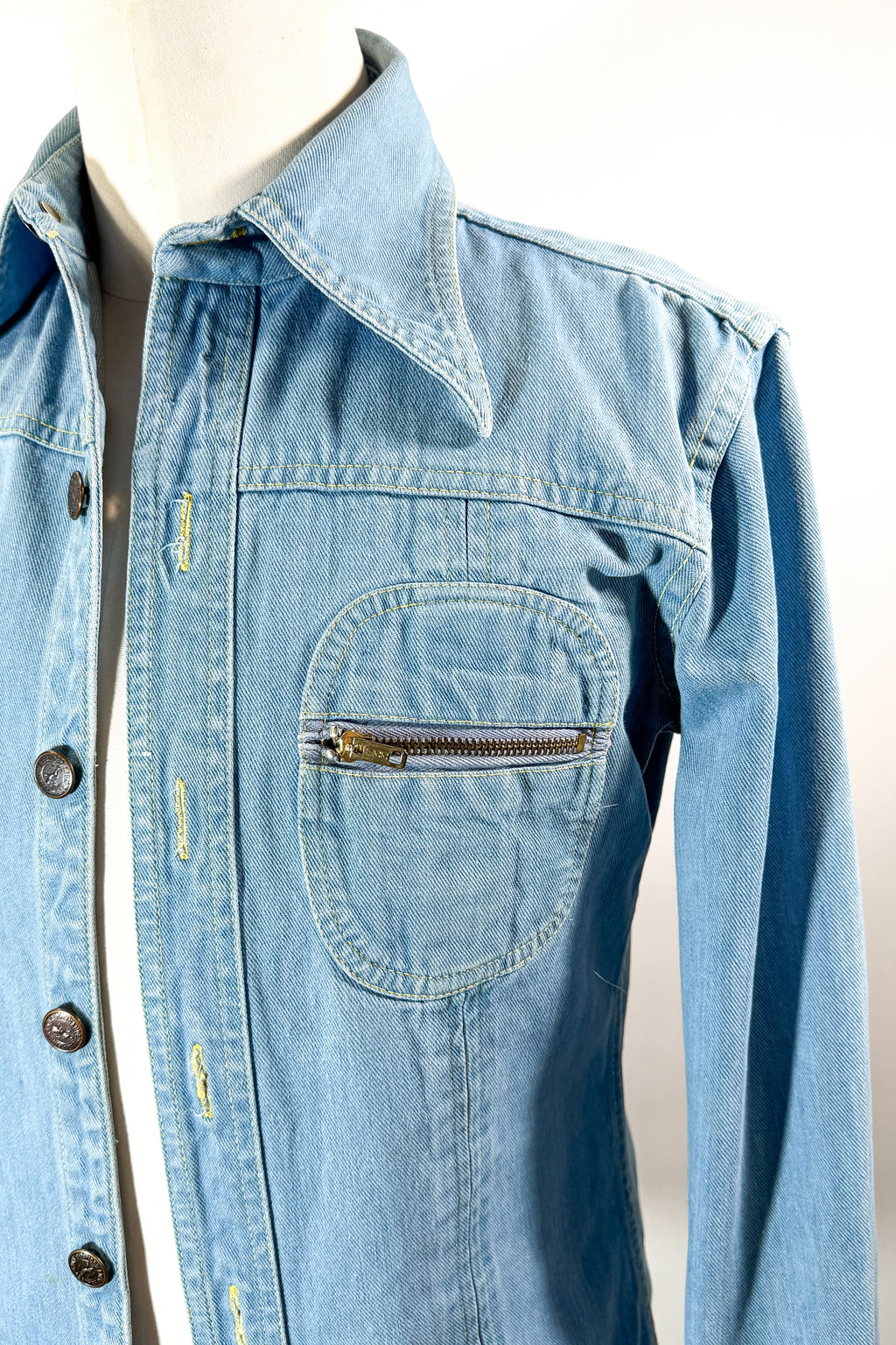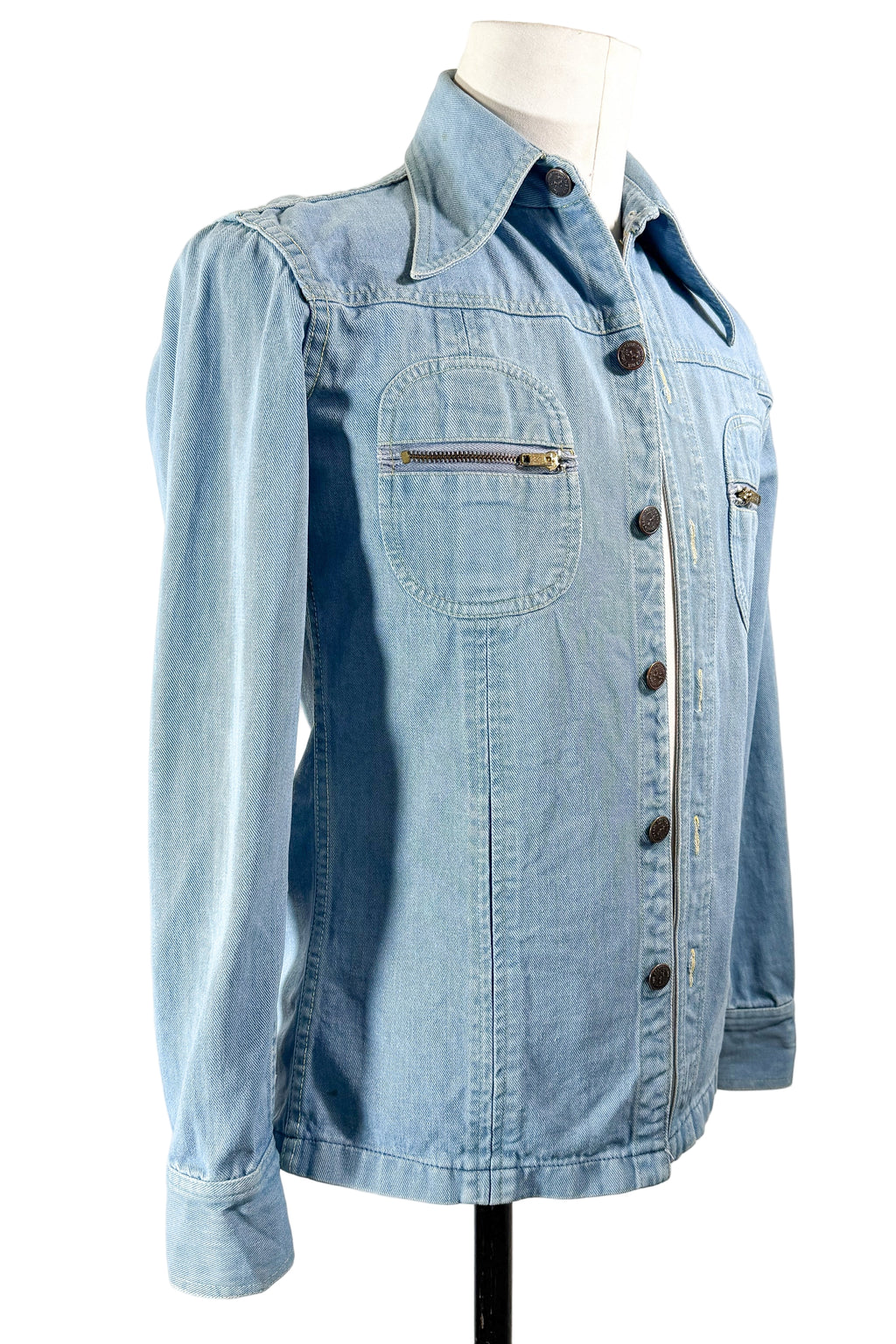Vintage 60s Denim Shirt Light Wash, Branded Lion S/XS