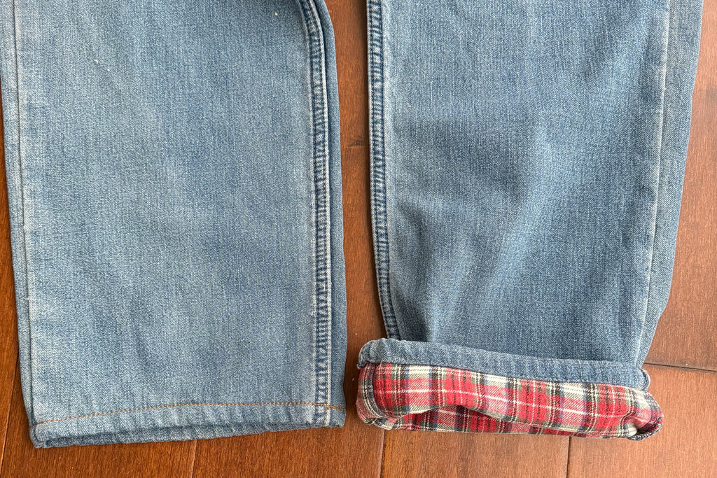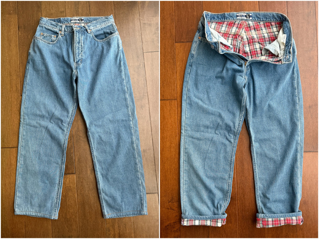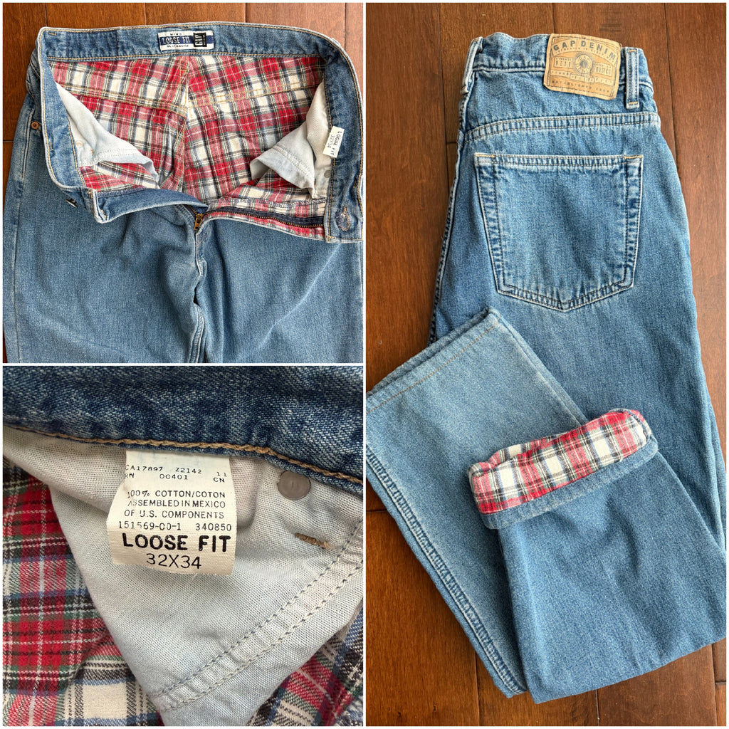 Vintage 90s Gap grunge loose fit jeans with plaid lining.