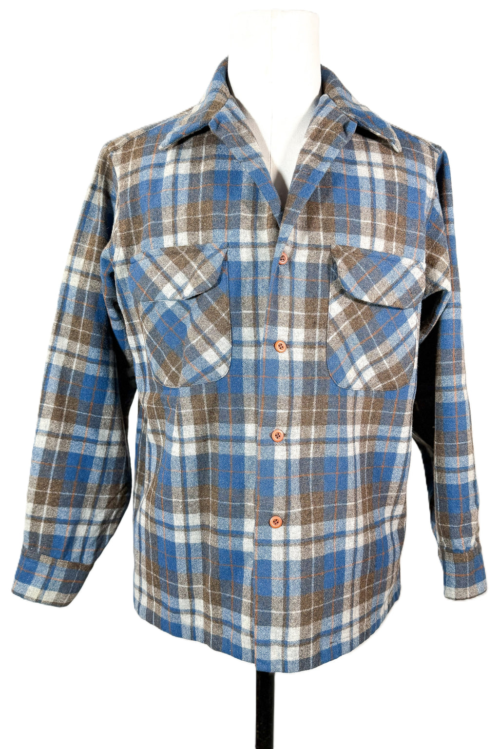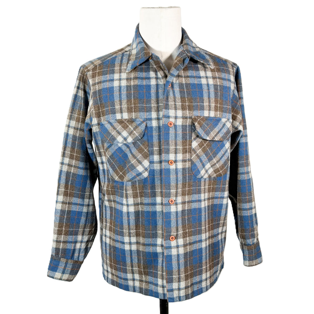 Distressed Pendleton plaid wool board shirt.