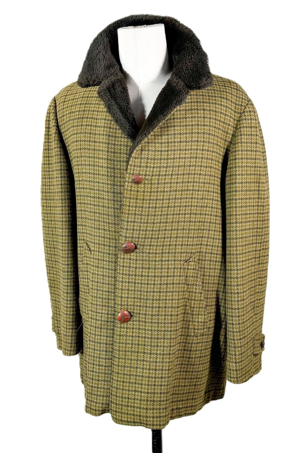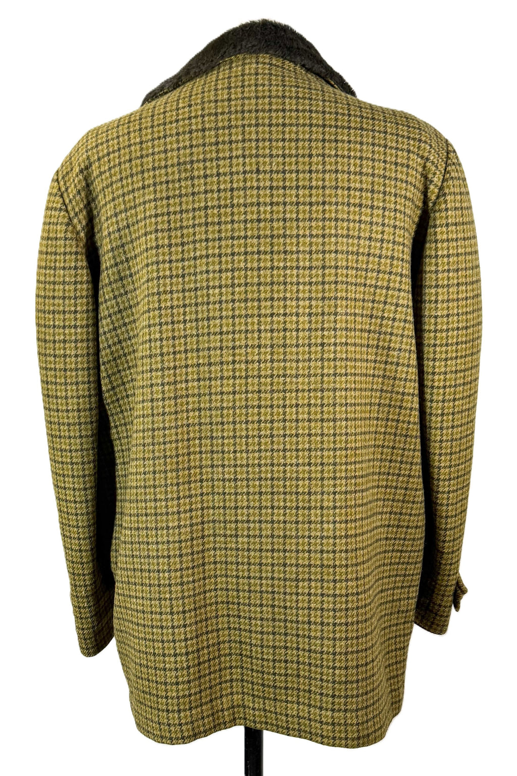 Condition: Very good preowned vintage. Has been professionally dry cleaned. The top button has been replaced, it is a little bit smaller than the others. The lining has spots that did not come out in the dry cleaning.
