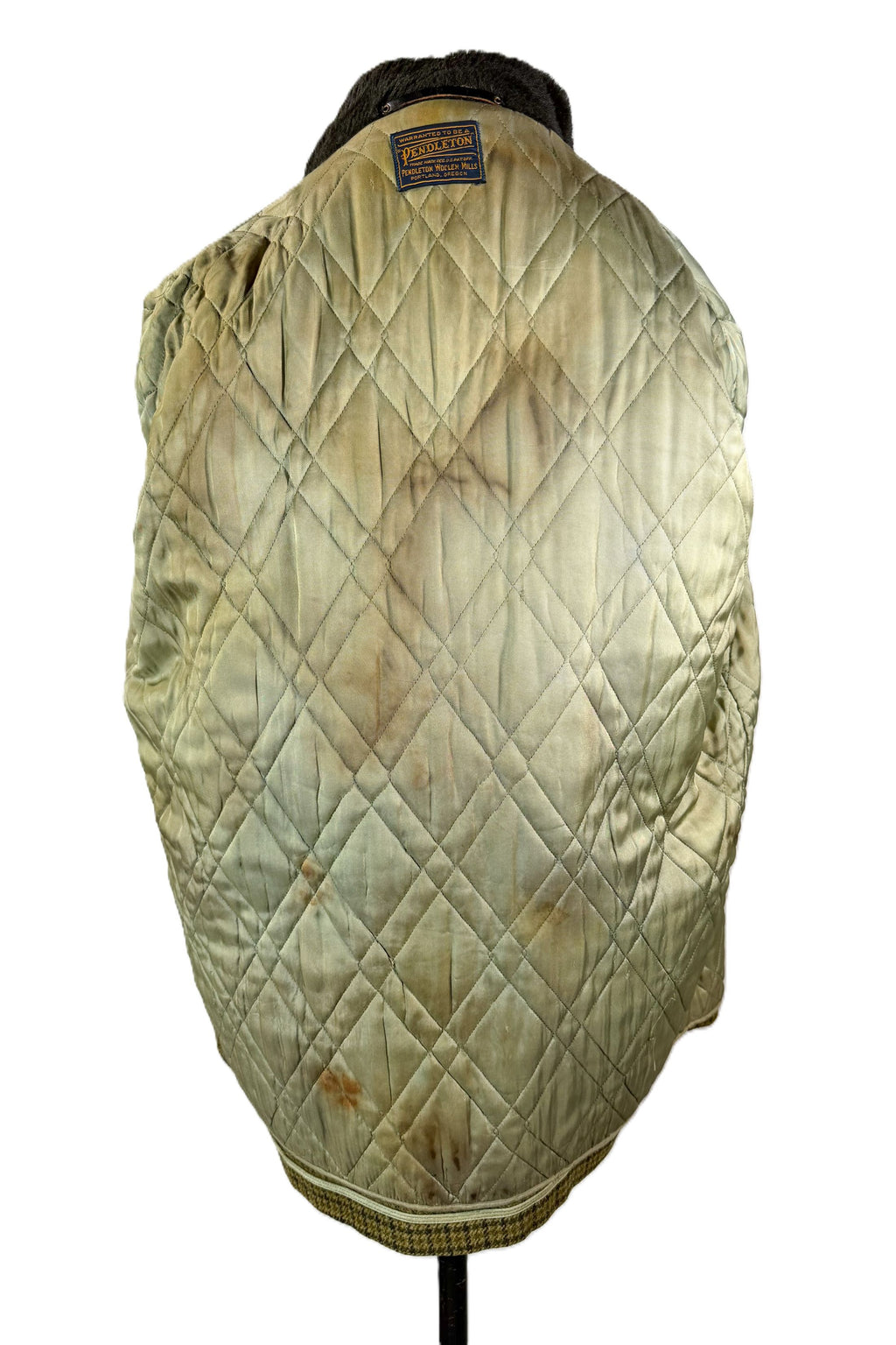 Vintage Pendleton wool houndstooth plaid jacket with quilted lining.
