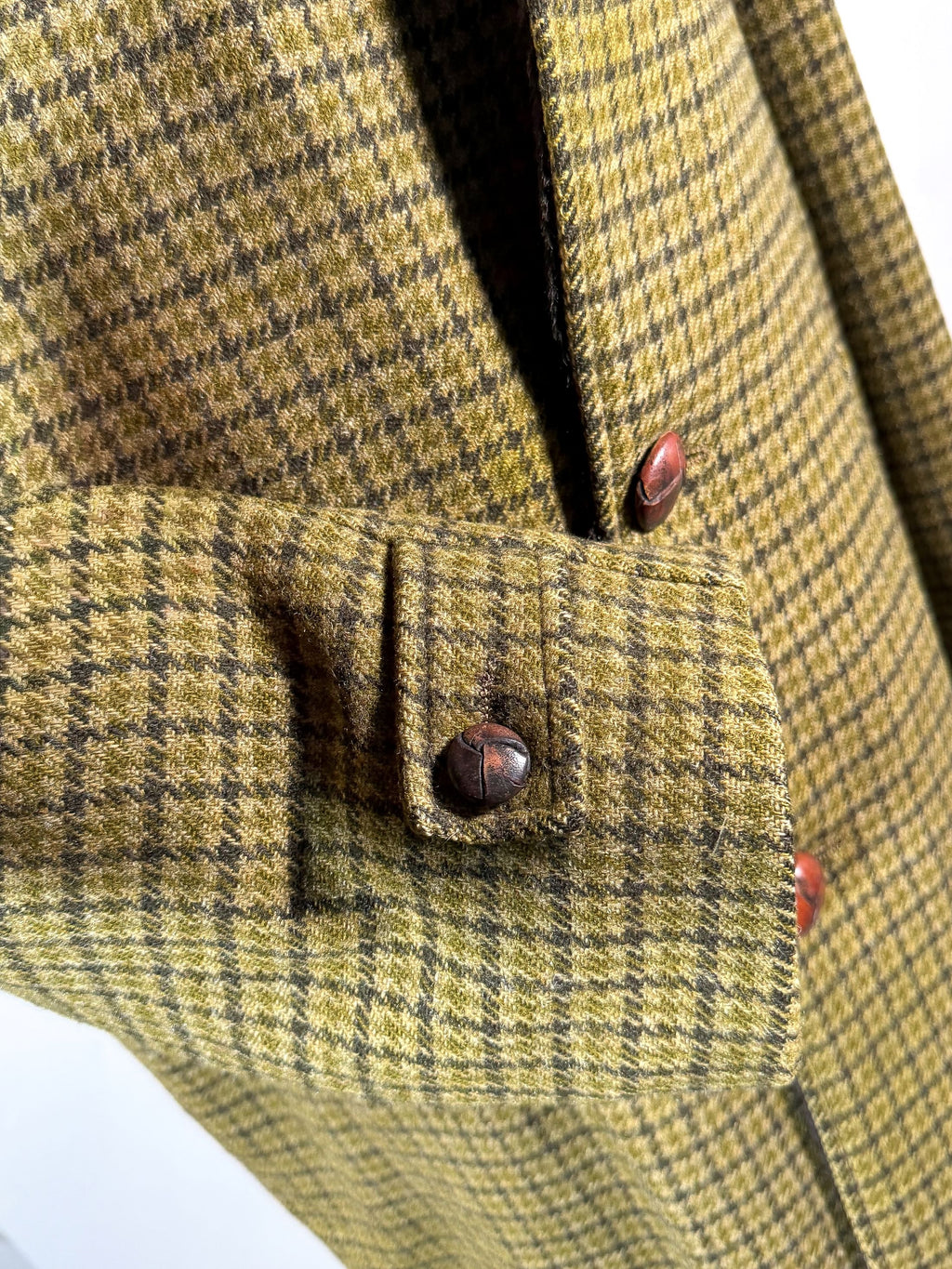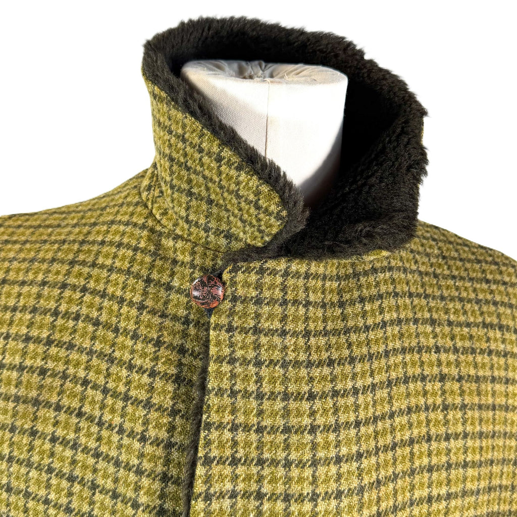 Pendleton Wool. Olive green on green colors, black collar. Houndstooth plaid.
