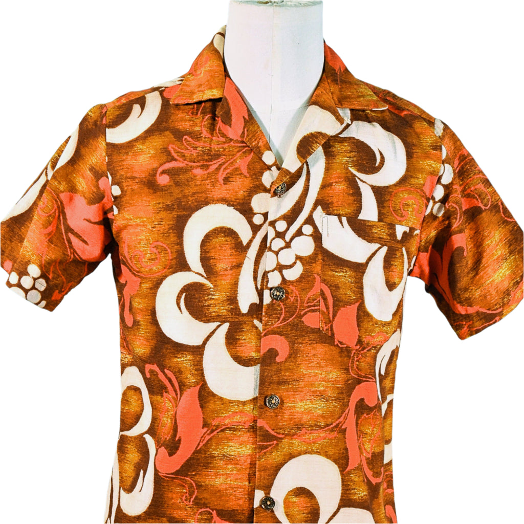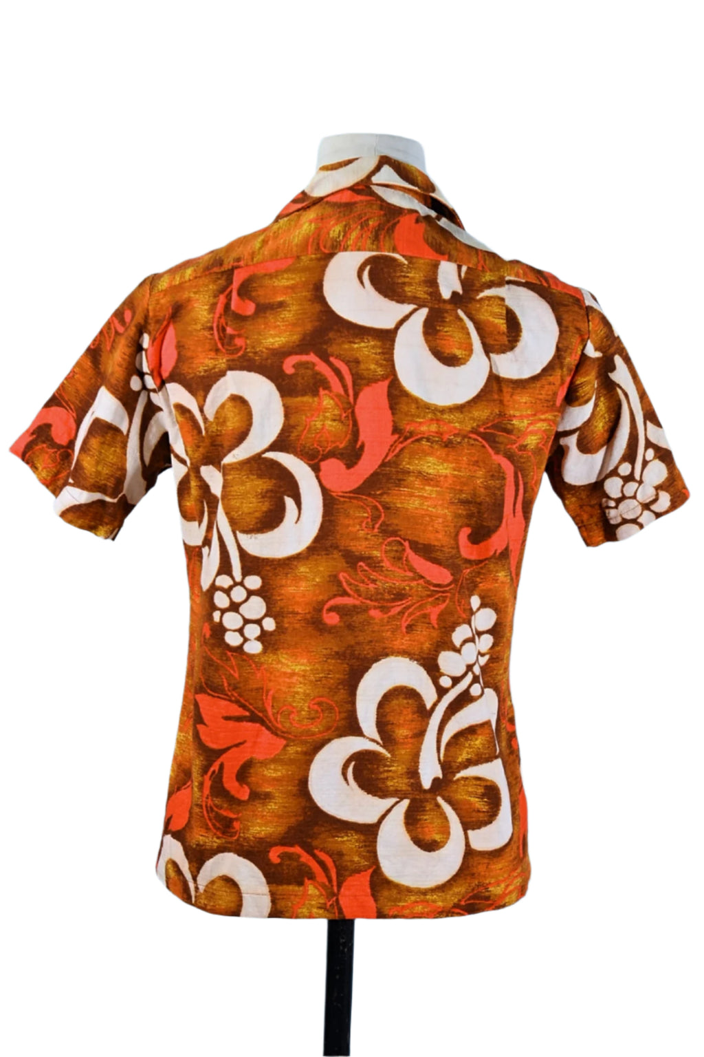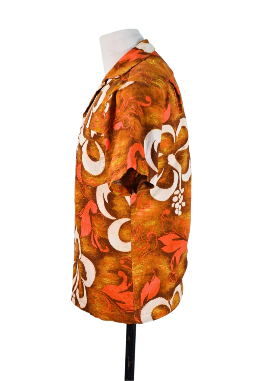 Vintage Royal Hawaiian barkcloth floral print shirt.