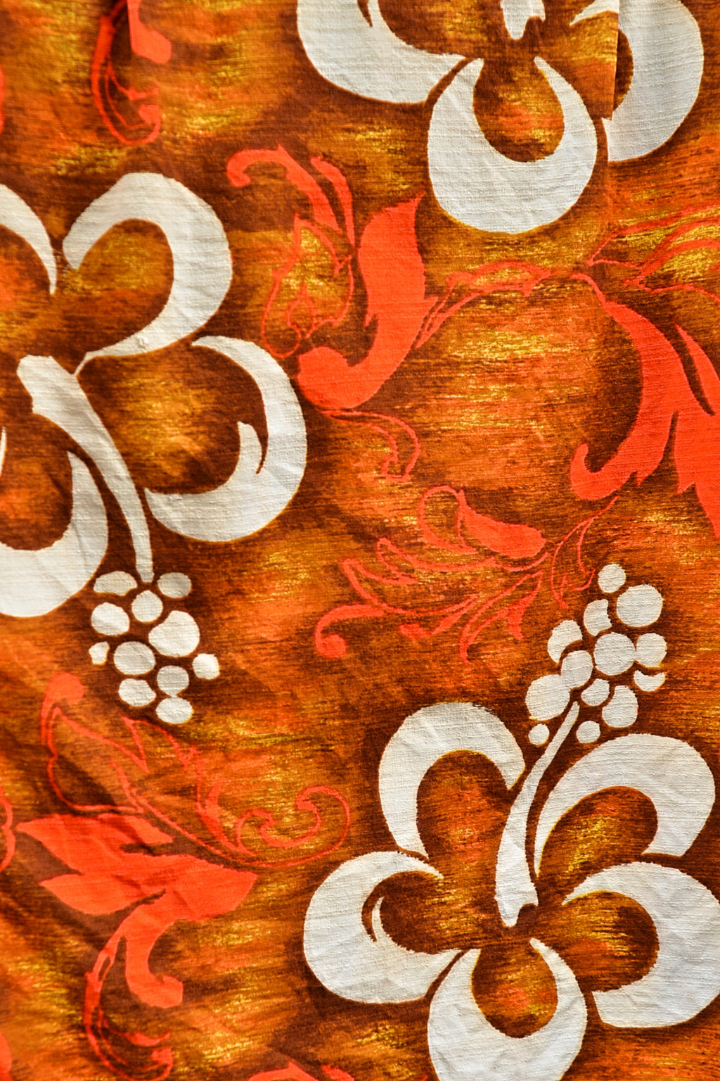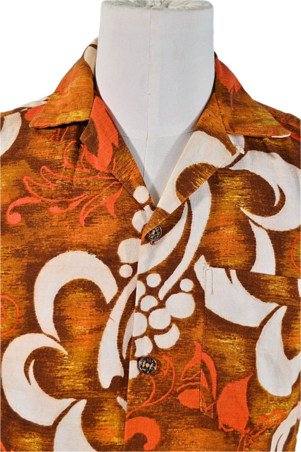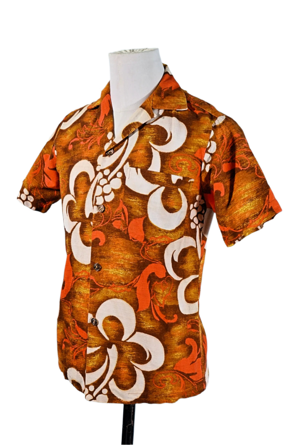 Vintage Royal Hawaiian barkcloth floral print shirt.