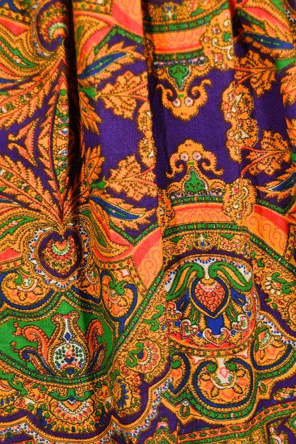 70s Gypsy Ruffle Skirt, Bohemian Paisley Print by Ellen Tracy 5/S